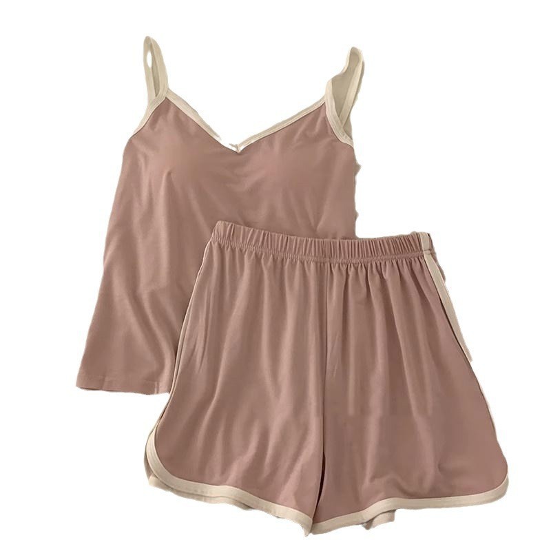 春夏季莫代尔吊带睡衣女带胸垫轻运动风可外穿休闲透气凉爽家居服