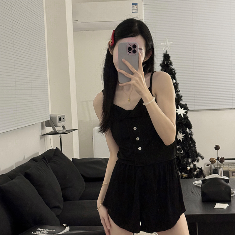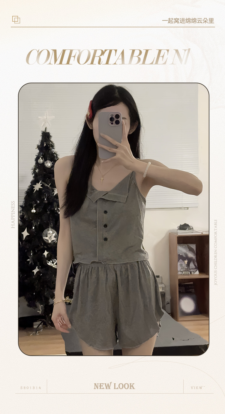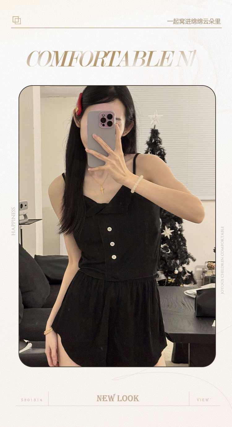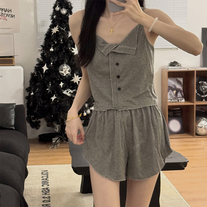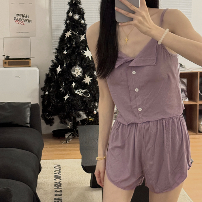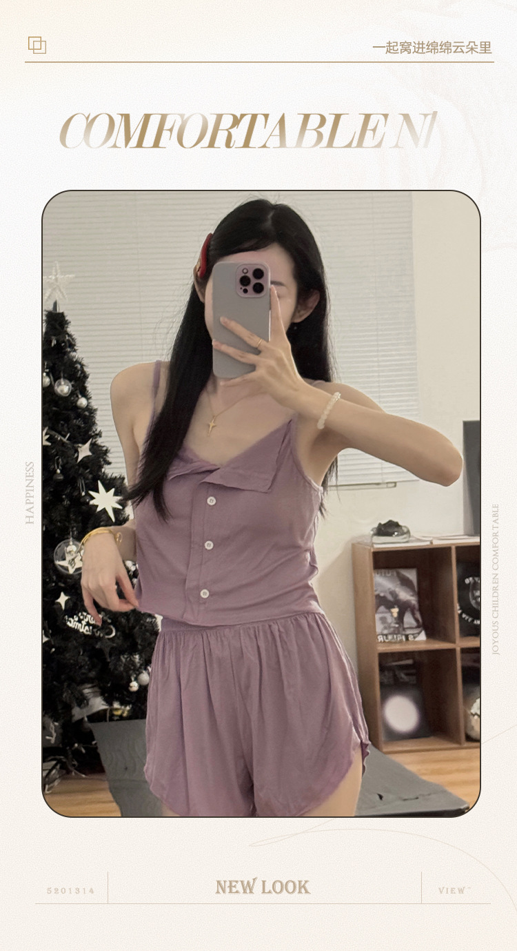 新款仙女风睡衣女夏莫代尔睡衣吊带短裤套装韩版性感带胸垫家居服