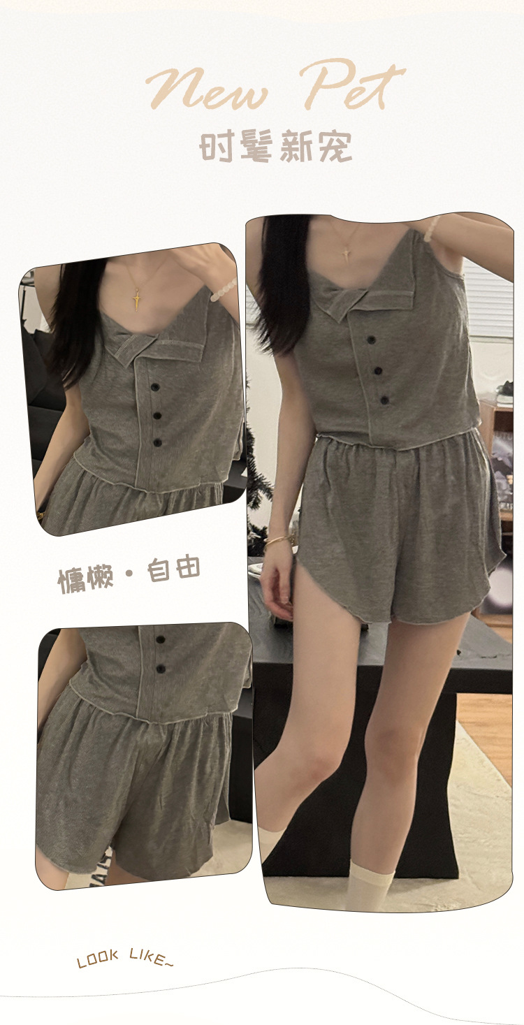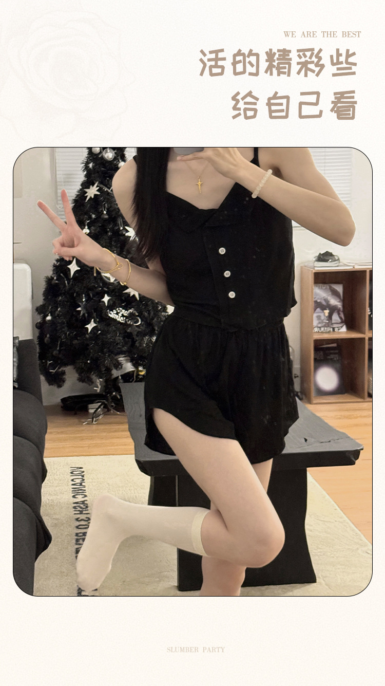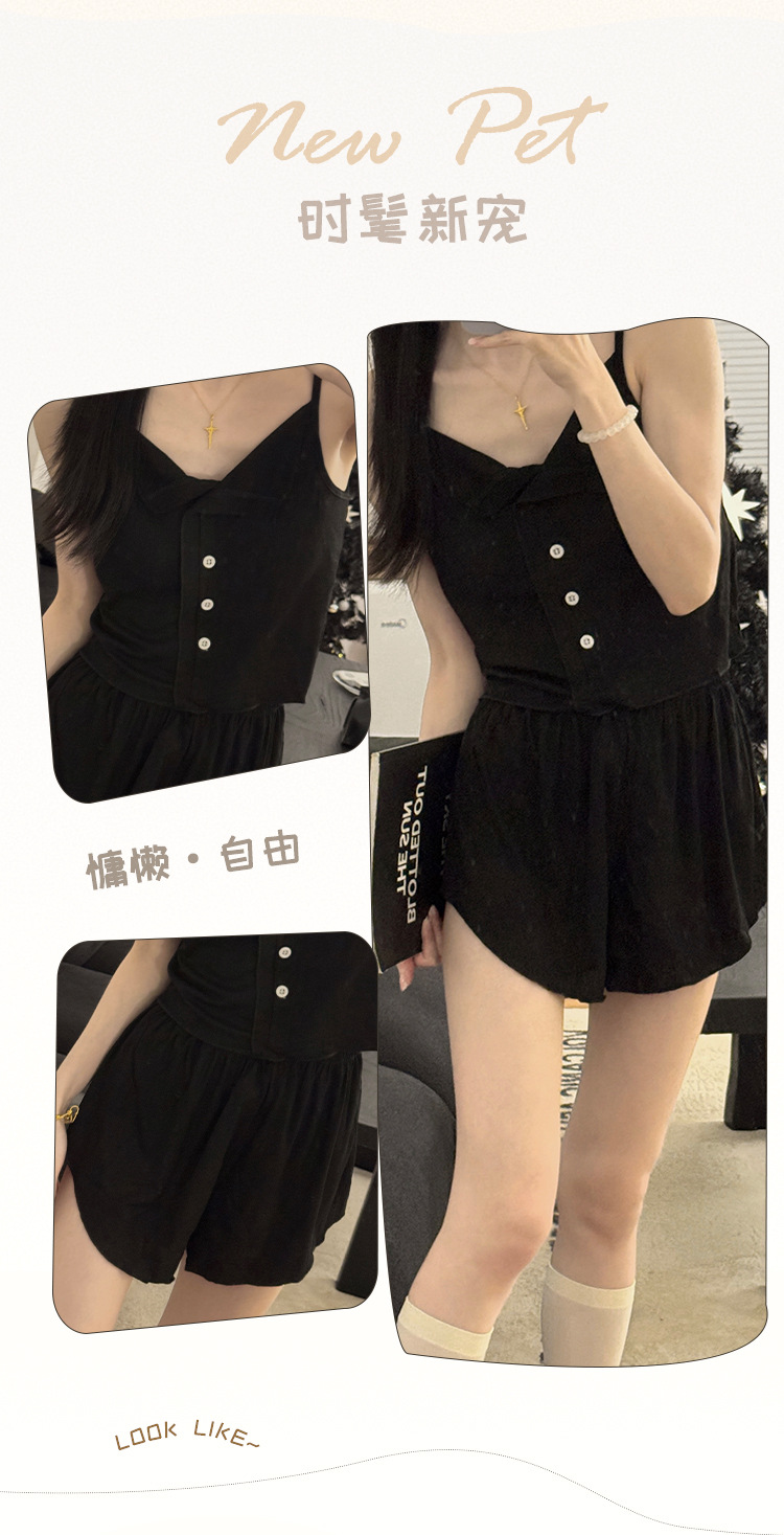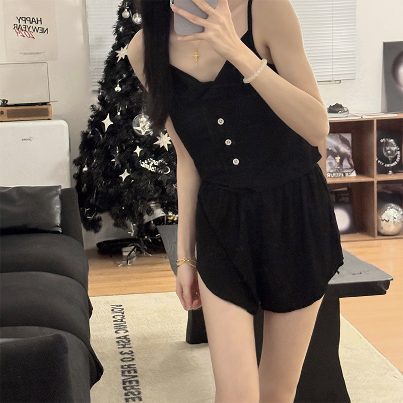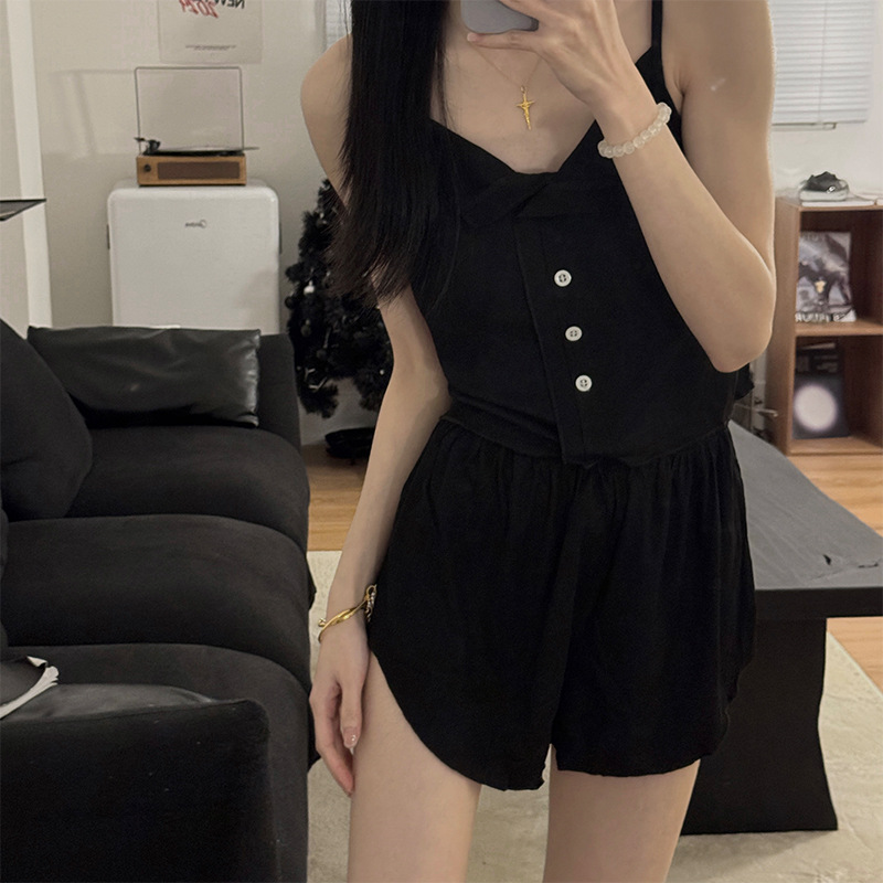 新款仙女风睡衣女夏莫代尔睡衣吊带短裤套装韩版性感带胸垫家居服