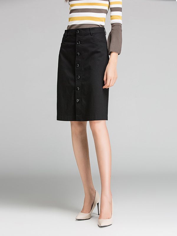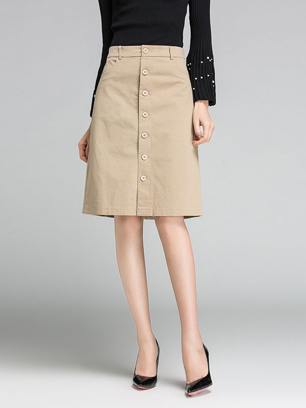 卡其色半身裙女春夏单排扣一步裙高腰职业工装裙短裙包臀a字中裙