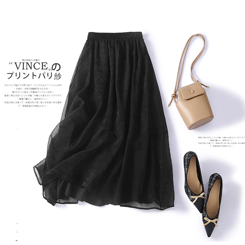 气质百搭高腰显瘦半身裙女夏季新款显瘦遮肉高级中长款纱裙女