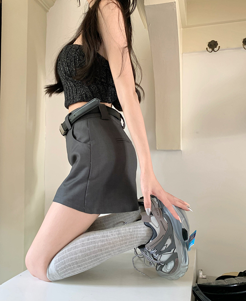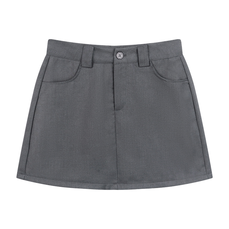 学院风小众灰色西装短裙女装秋季小个子高腰显瘦包臀a字半身裙子