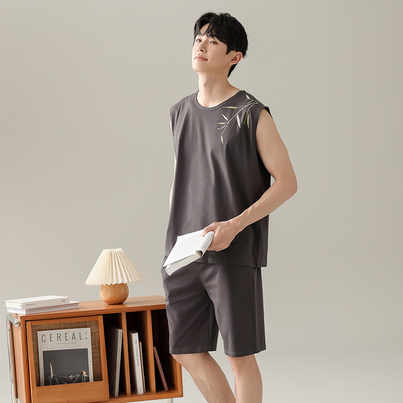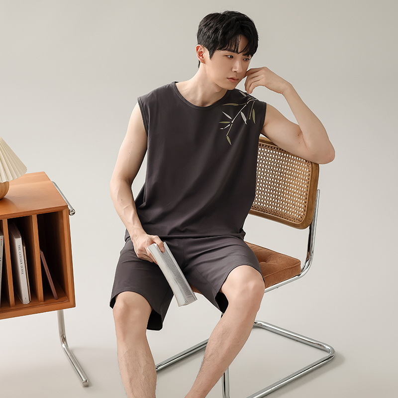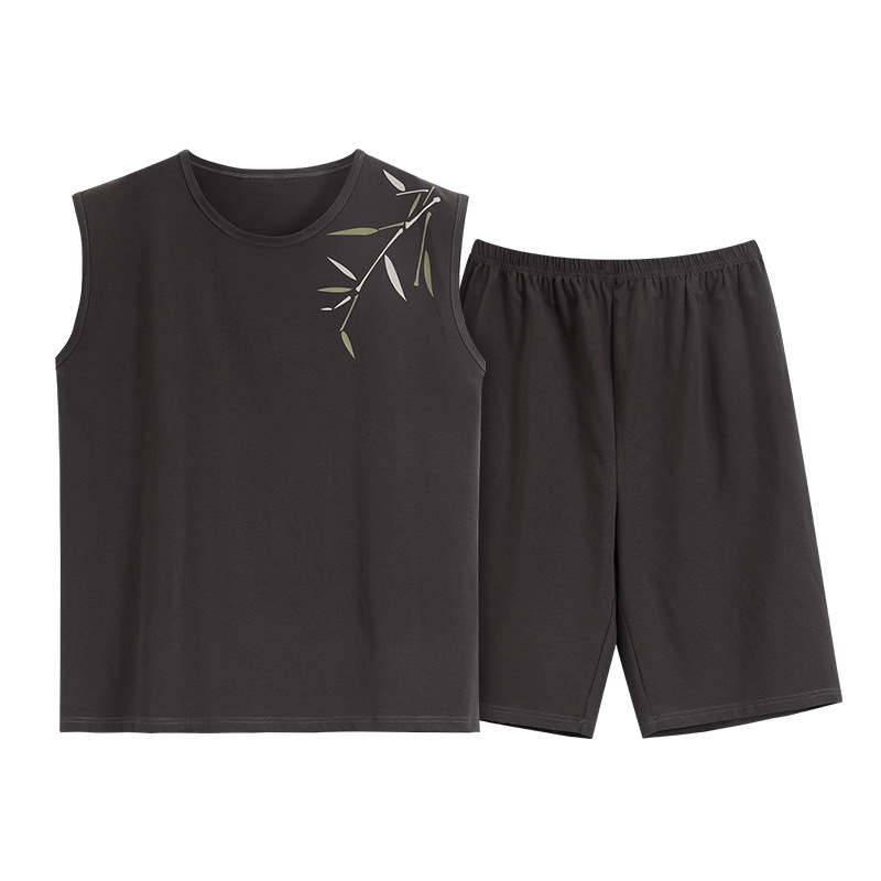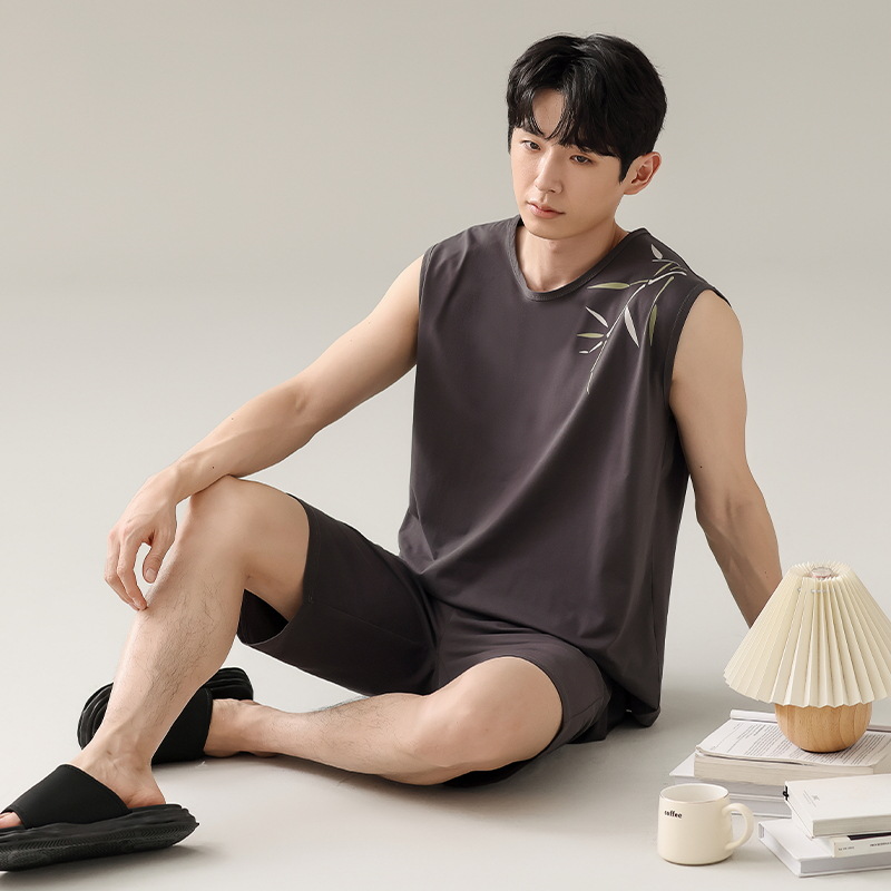 夏季莫代尔薄款睡衣男背心国风印花可外穿休闲男士家居服套装