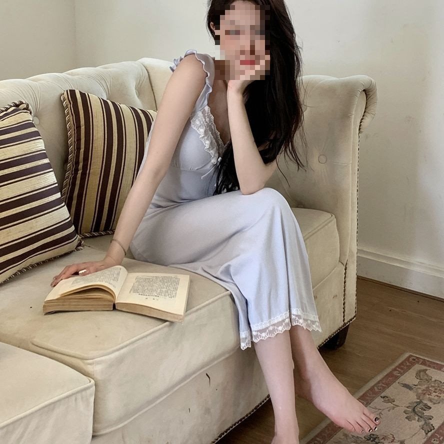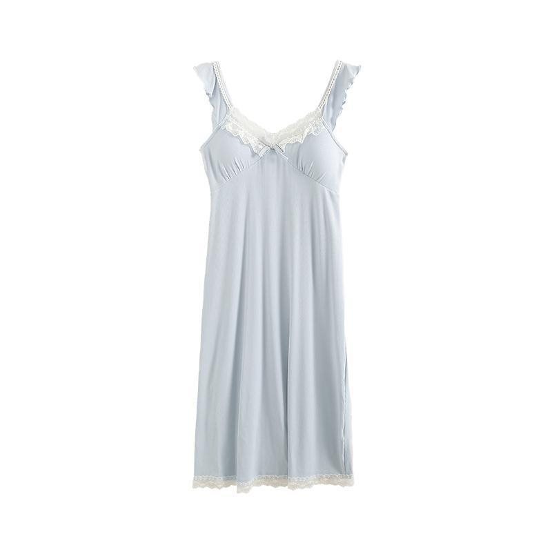 莫代尔带胸垫睡裙女夏季V领性感蕾丝吊带裙网红纯欲风大码睡衣裙