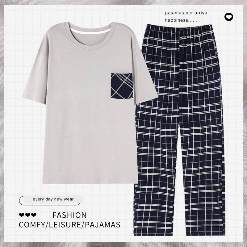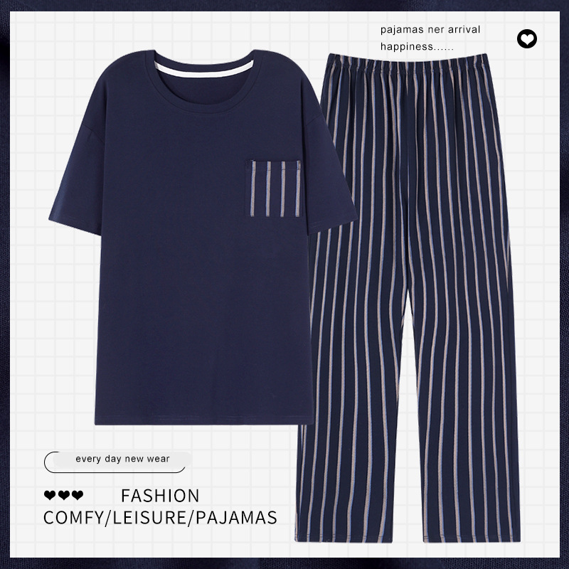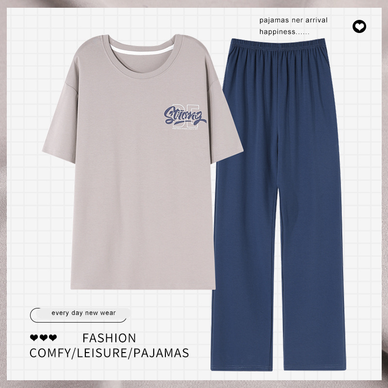 睡衣男夏季莫代尔家居服短袖长裤套装新款冰丝男士夏款两件套