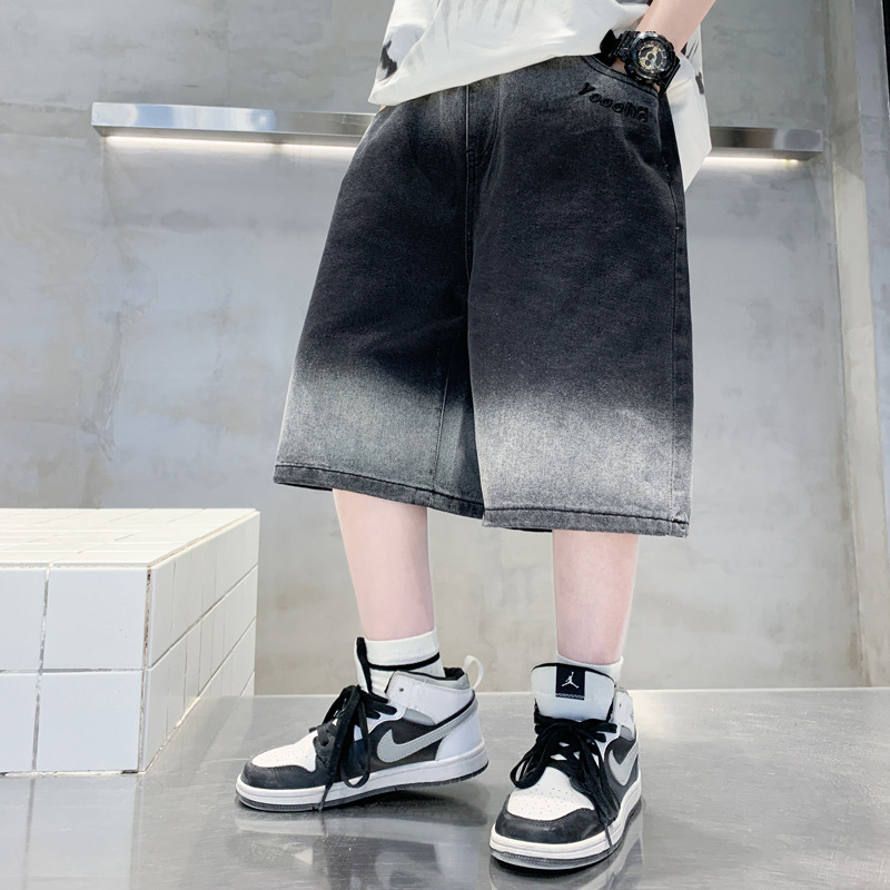 儿童黑色渐变牛仔短裤夏装2025新款男童中裤夏季薄款男孩五分裤子