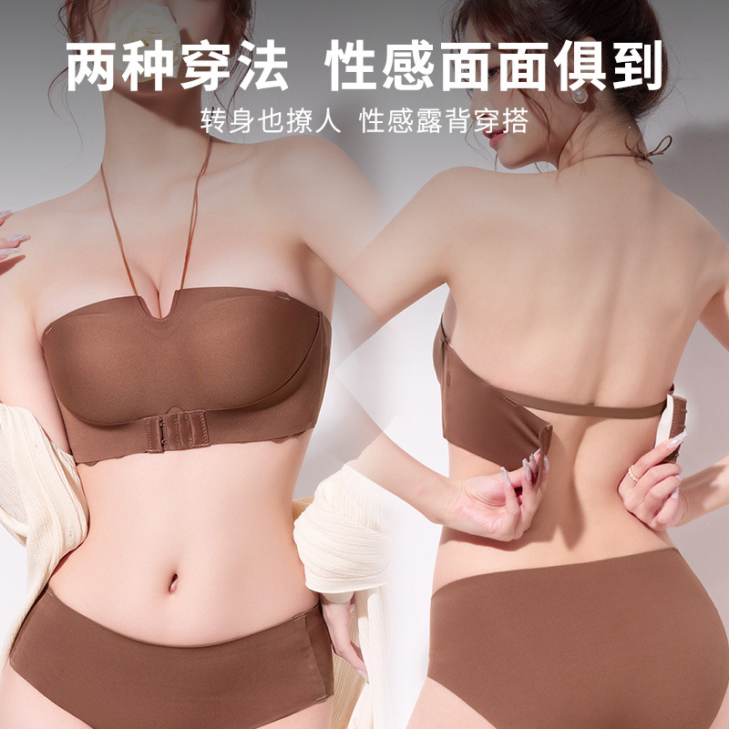 无痕无肩带内衣女小胸聚拢调整型美背防滑防走光抹胸前扣隐形文胸
