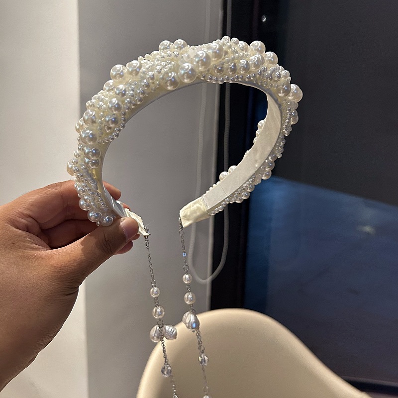 重工珍珠流苏发箍宽边头箍欧美复古纯手工串珠海绵高颅顶发箍发束