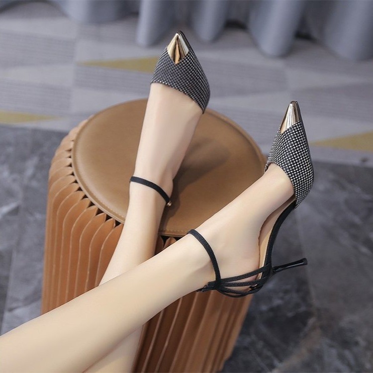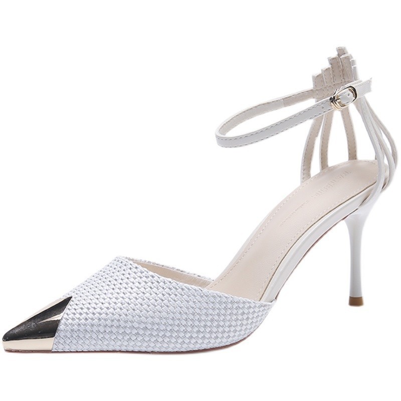 高跟中空凉鞋夏季外穿金属扣尖头细跟高跟高级感轻奢时尚女鞋