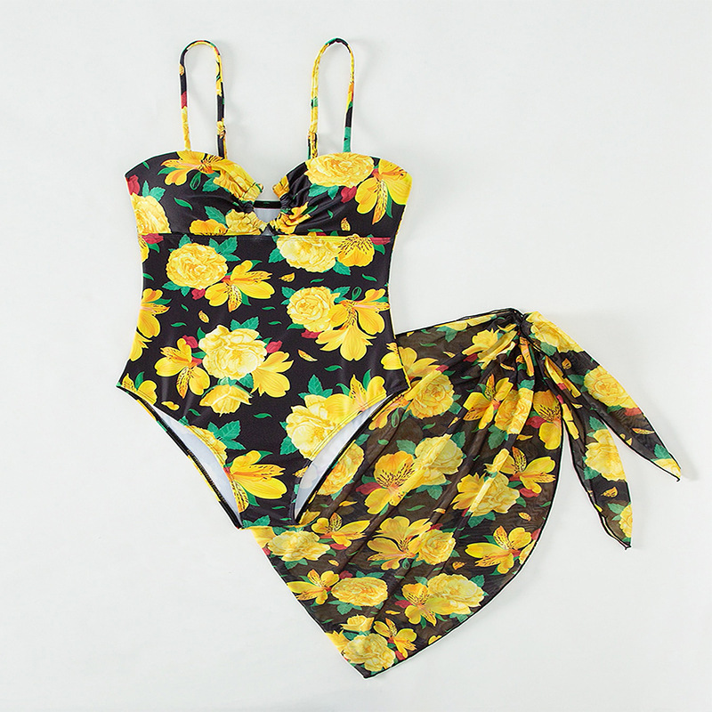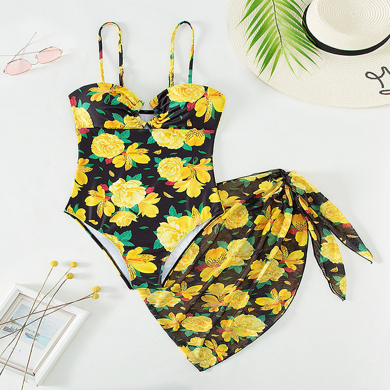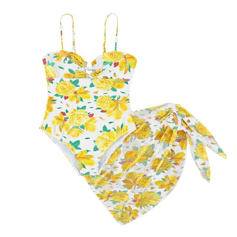 新款欧美保守紧身连体泳衣女高级感温泉沙比基尼滩裙套装