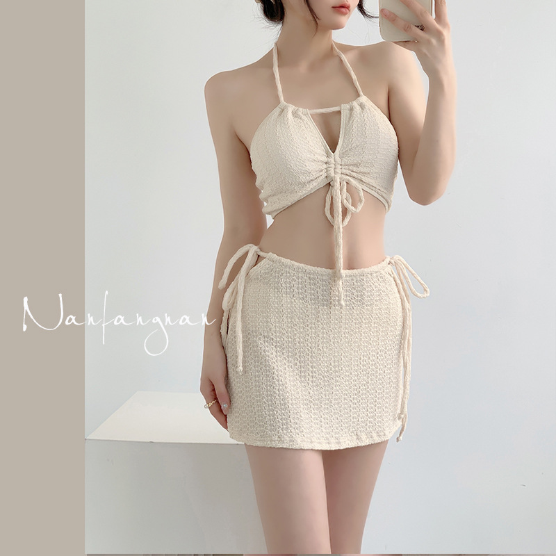 网红款时尚泳衣女高级感三件套保守显瘦比基尼温泉小清新分体泳装