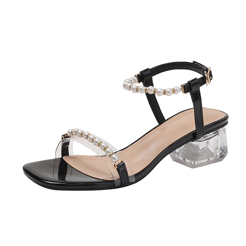 凉鞋女新款春季不累脚小众高级感水晶中跟粗跟仙女透明高跟鞋