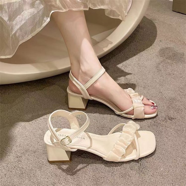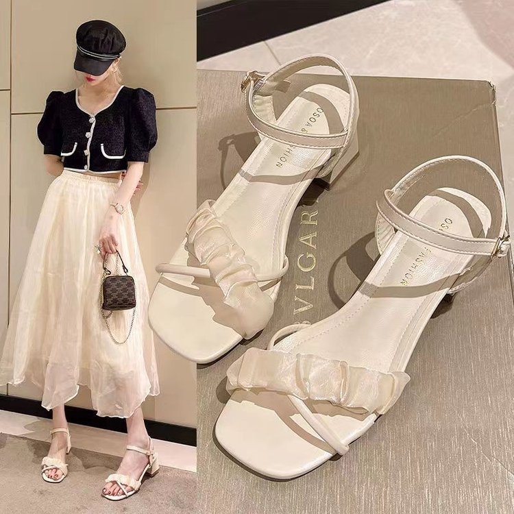 网红仙女风高跟凉鞋女夏季新款高级感法式粗跟一字罗马鞋女鞋