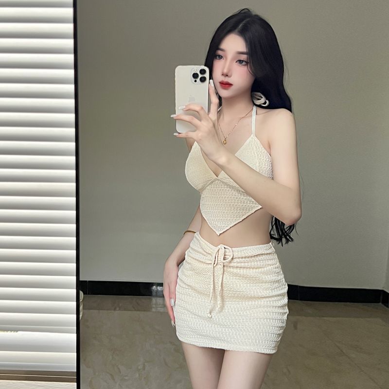 泳衣女比基尼女三件套分体新款时尚裙式镂空保守海边泡温泉