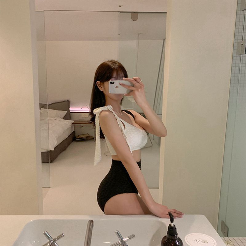 连体泳衣女韩版单肩露背性感修身时尚小胸聚拢温泉海边游泳装