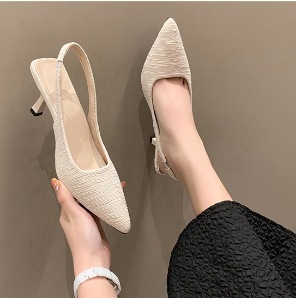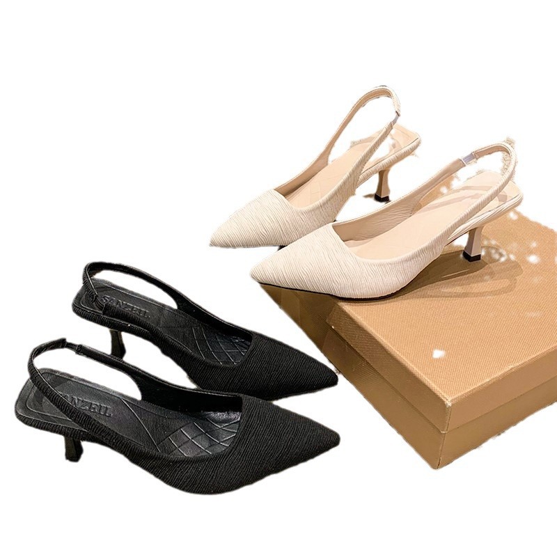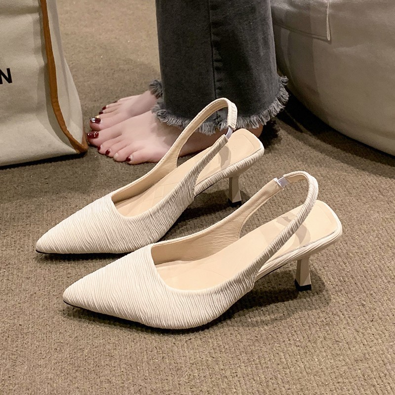 法式高跟包头后空凉鞋女春夏季小众高级感尖头细跟小香风单鞋