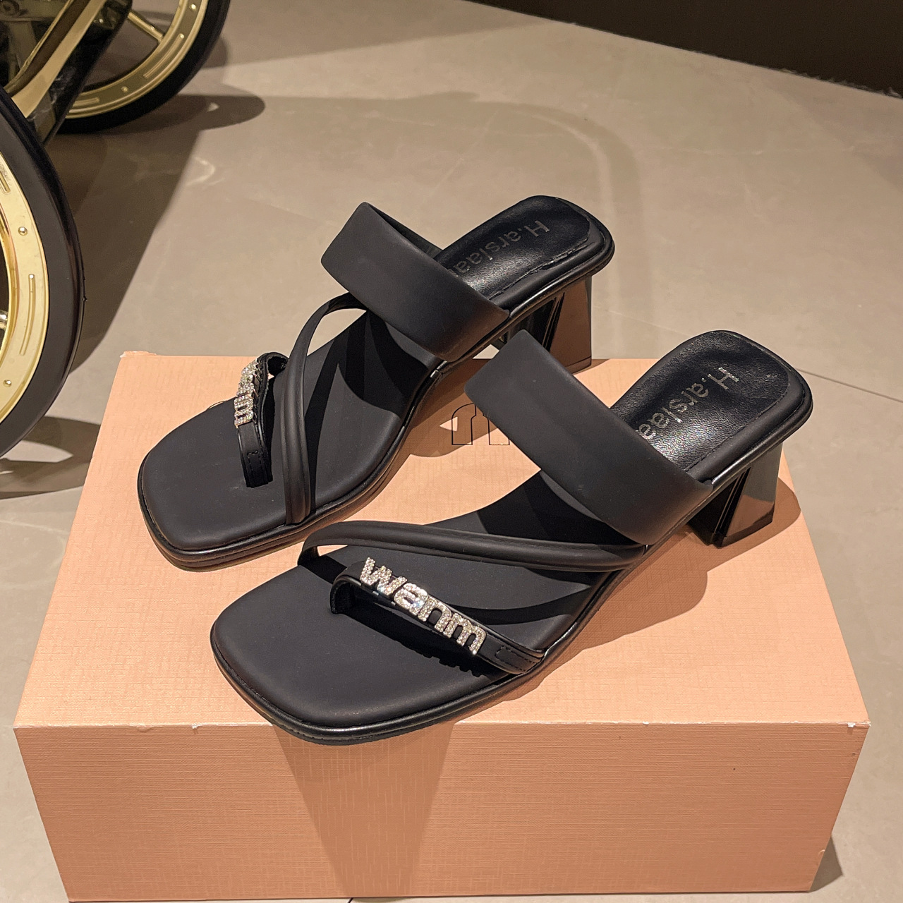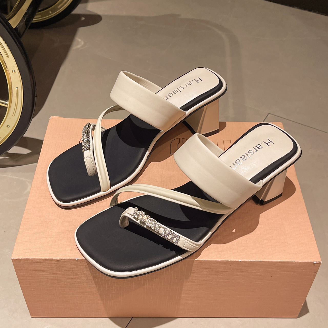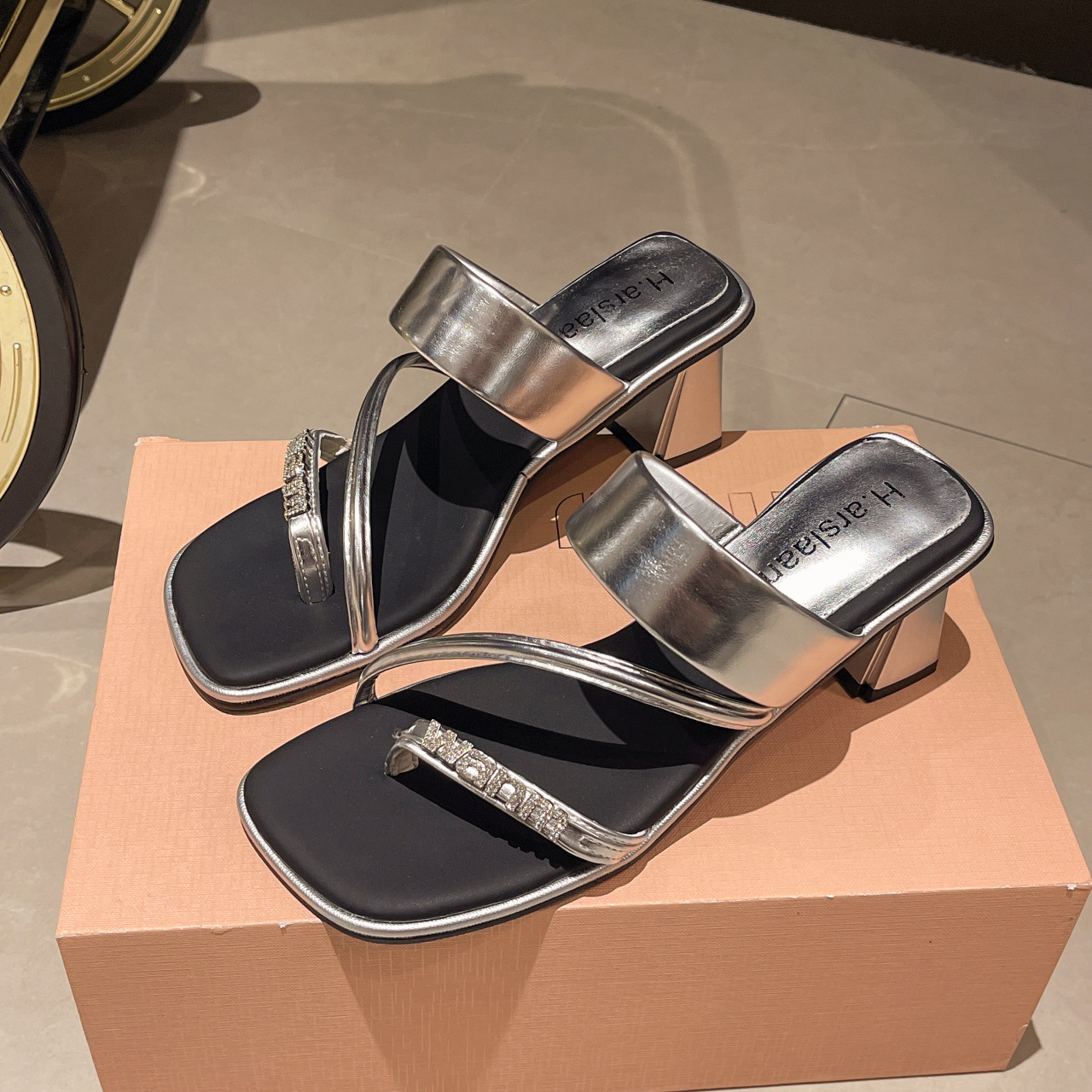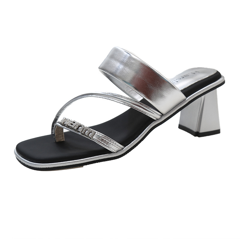 高级感夹趾粗跟拖鞋女外穿夏新款水钻高跟一字拖时尚百搭凉鞋