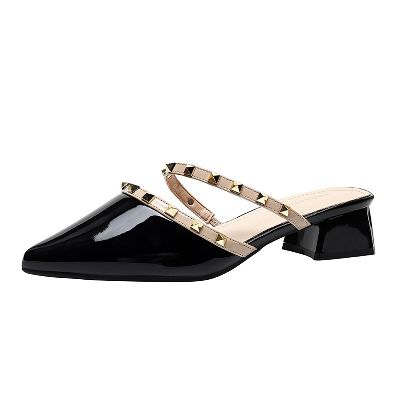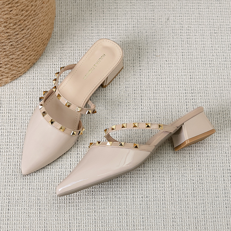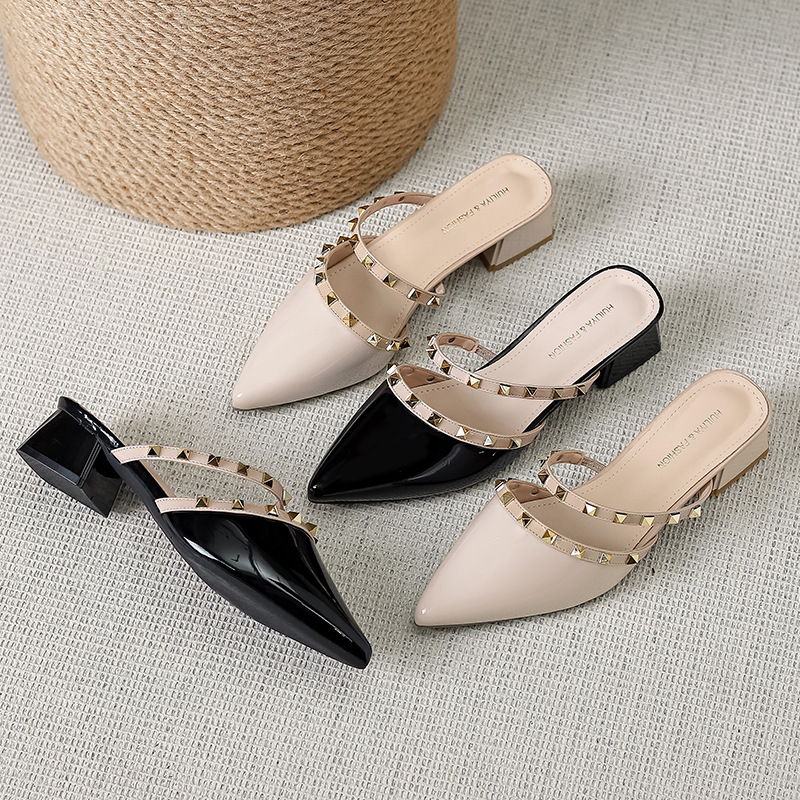 包头半拖鞋女夏外穿新款配裙子粗跟尖头低跟软皮单鞋穆勒鞋