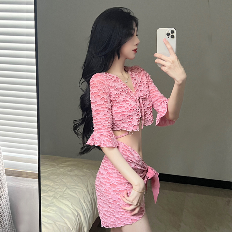 游泳衣女比基尼四件套分体新款时尚裙性感泡温泉海边度假泳装