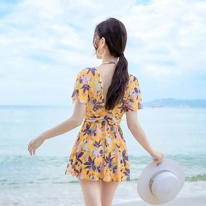 泳衣女成人新款保守遮肚显瘦连体裙式时尚温泉性感海边度假泳装