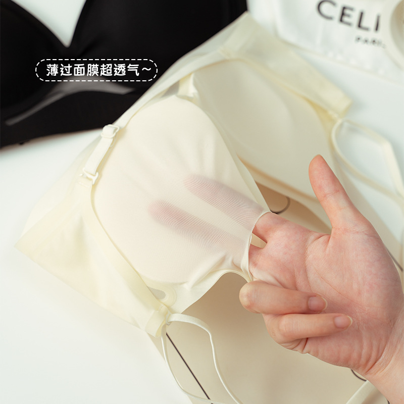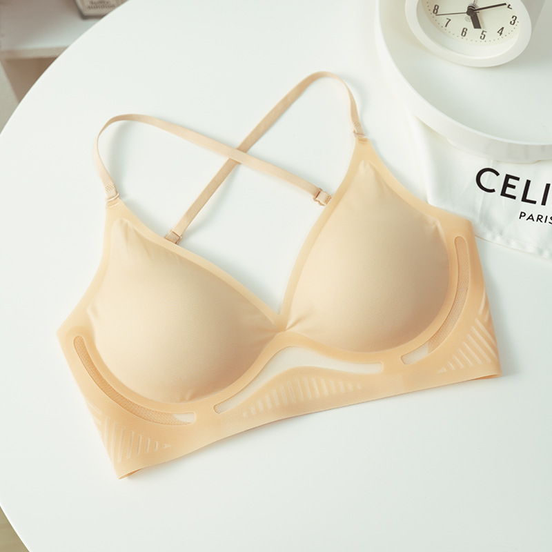 美背无痕内衣夏季女薄款无钢圈文胸果冻胶交叉挂脖一字扣胸罩