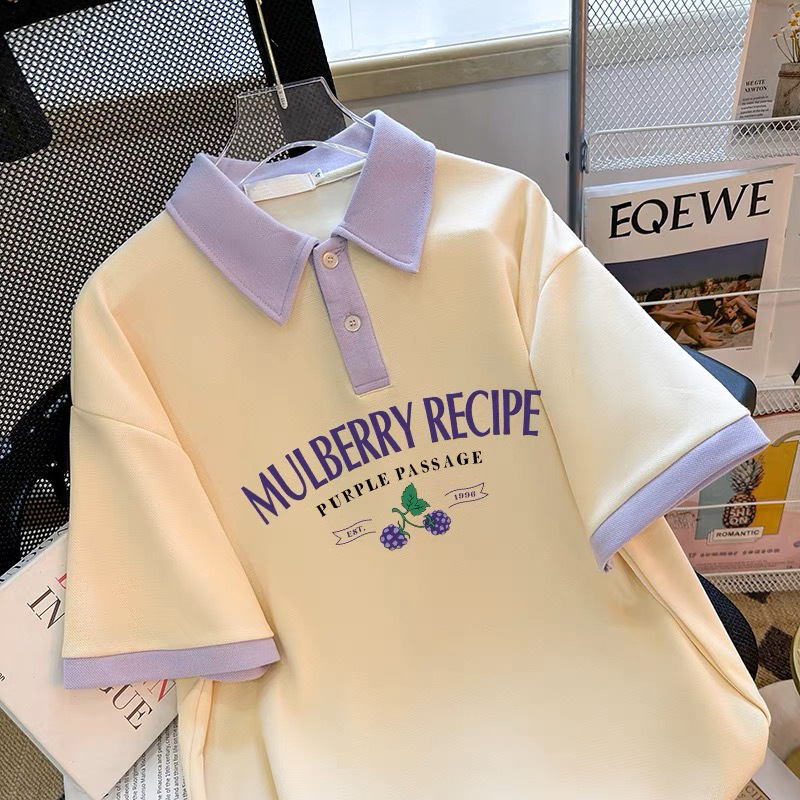 多巴胺穿搭撞色翻领短袖T恤女夏季新款宽松设计感甜美POLO衫