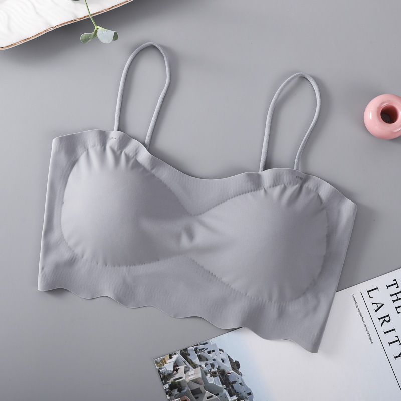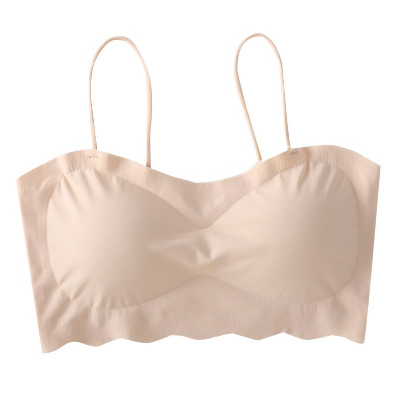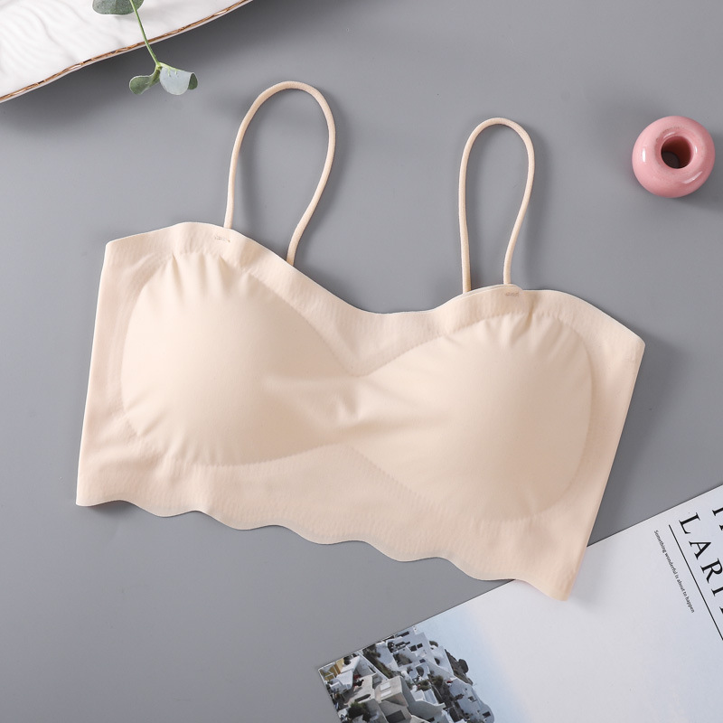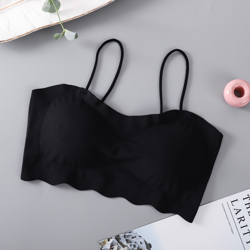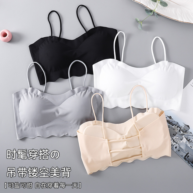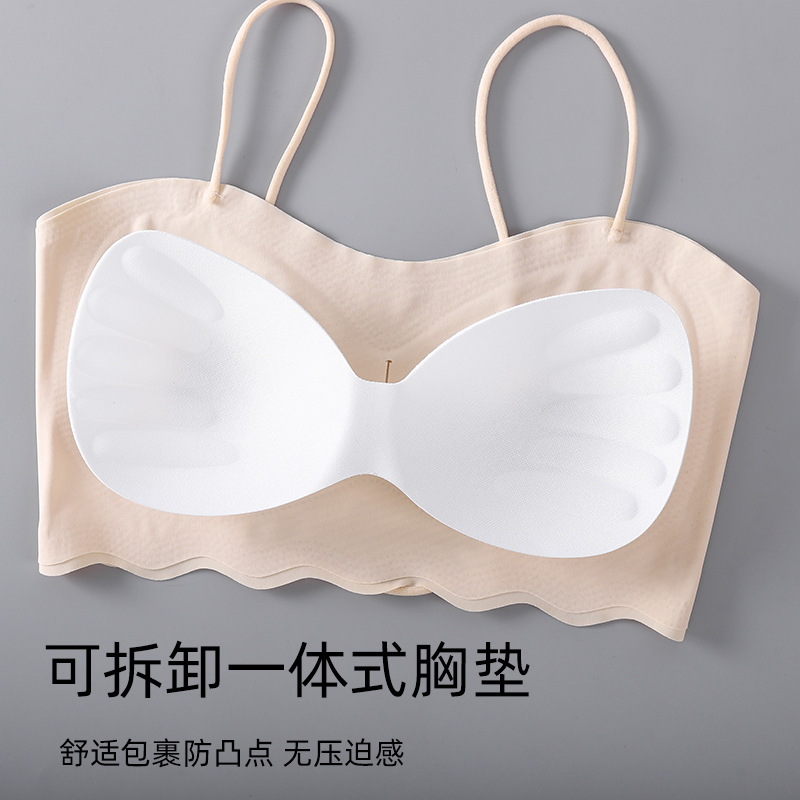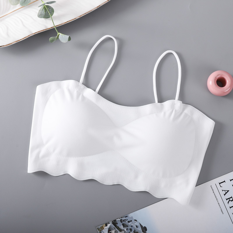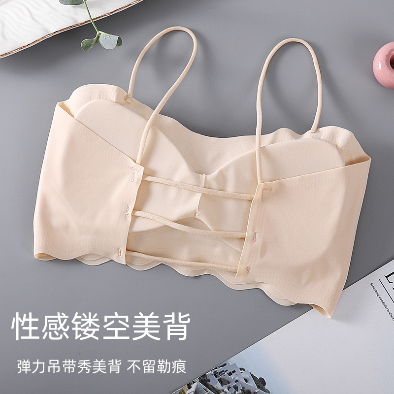 夏季无痕吊带荷叶边少女抹胸无钢圈防走光简约背心纯色美背裹胸薄