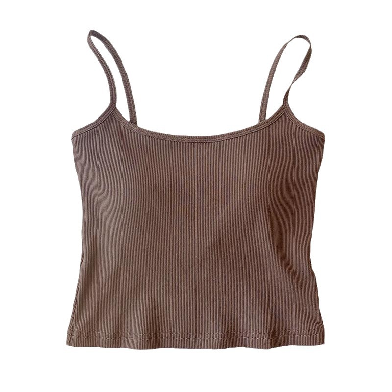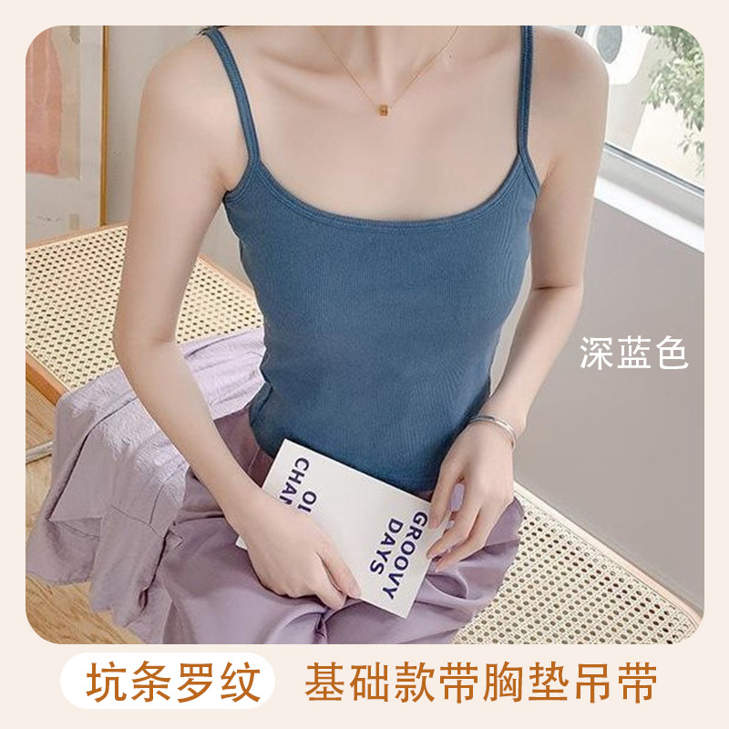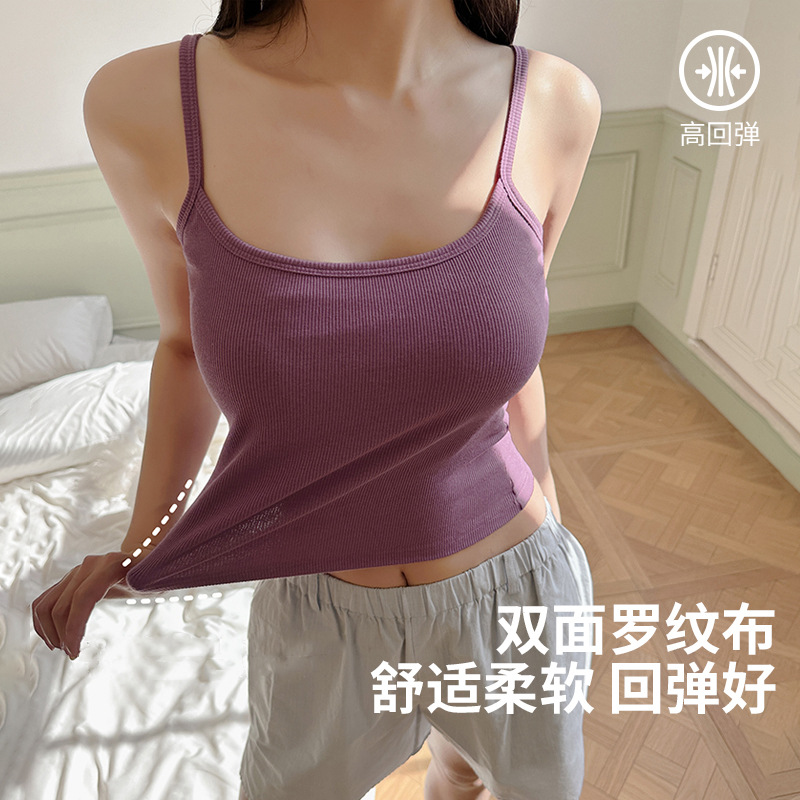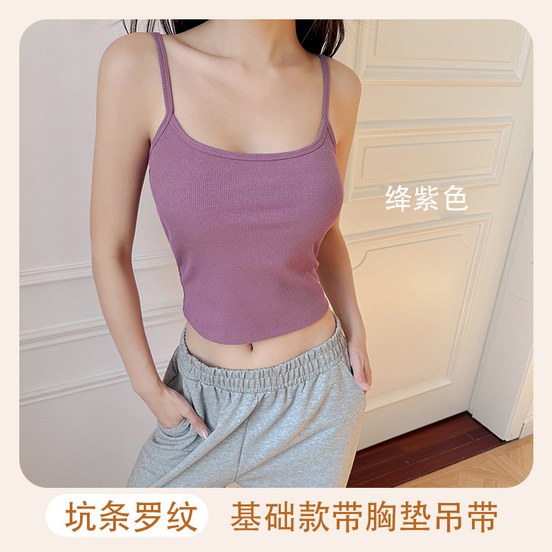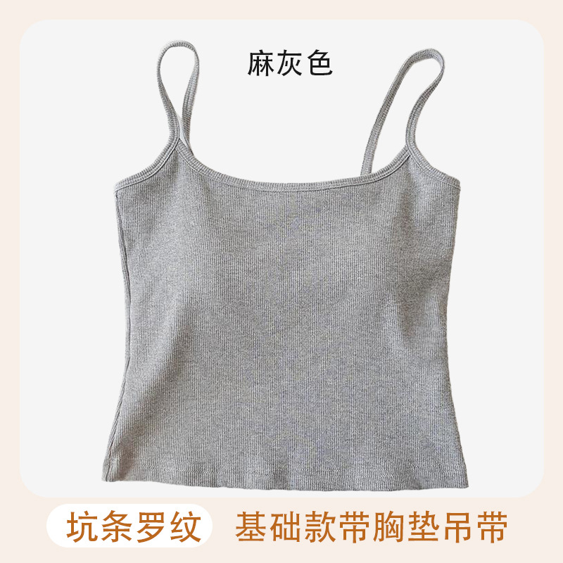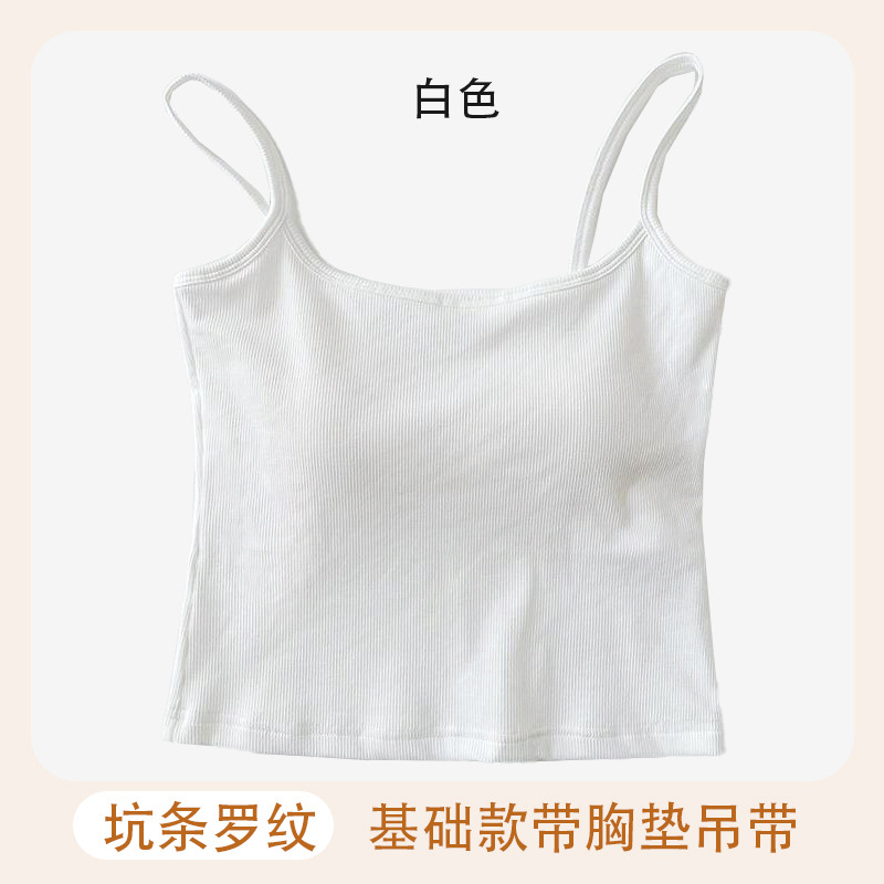春季纯色罗纹棉质固定杯带胸垫外穿背心女收副乳内搭女士吊带