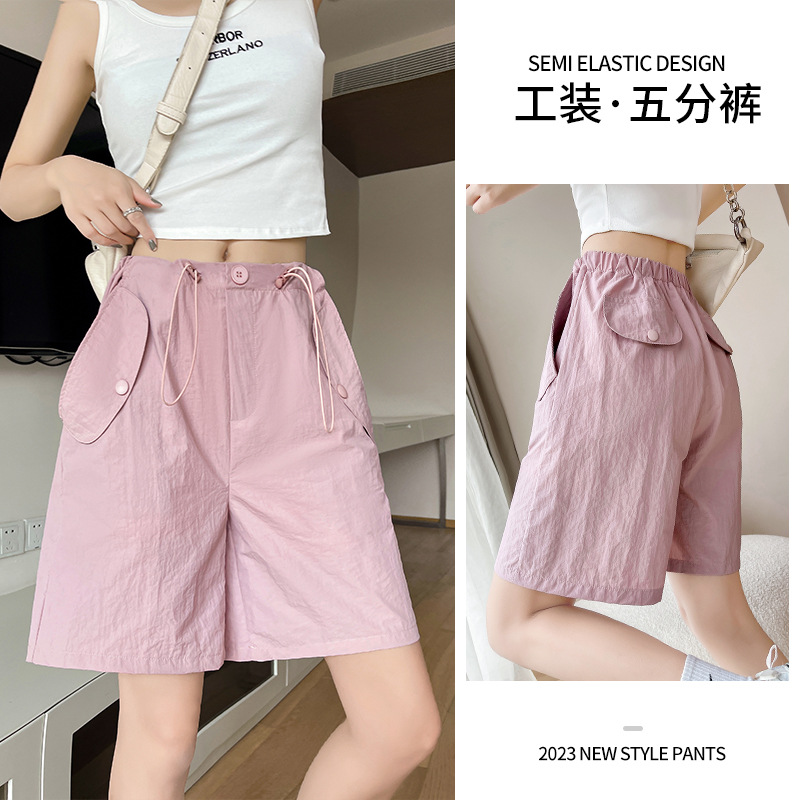 锦纶速干工装短裤女夏季薄款直筒休闲五分裤显瘦美式辣妹阔腿裤