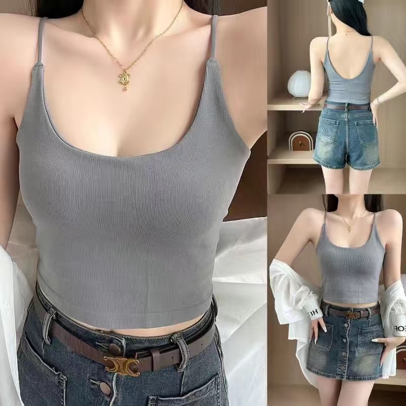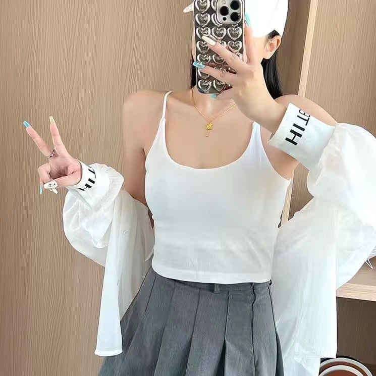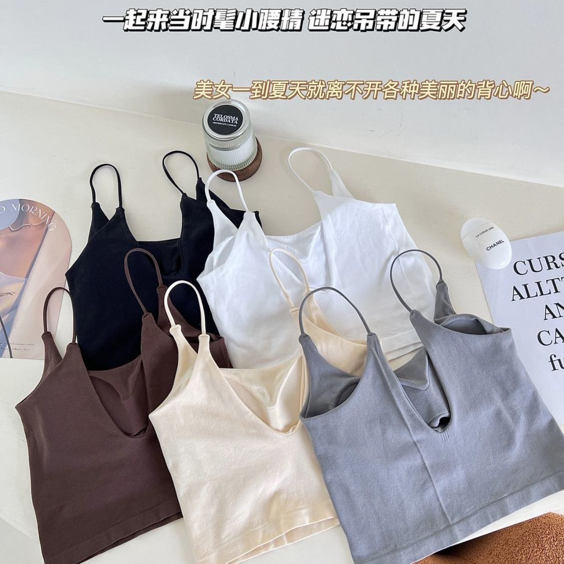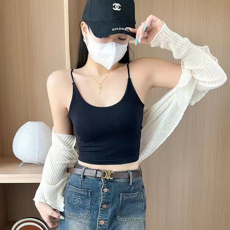 洋气吊带小胸背心紧身抹胸上衣文胸打底美背内衣女带胸垫一体弹力