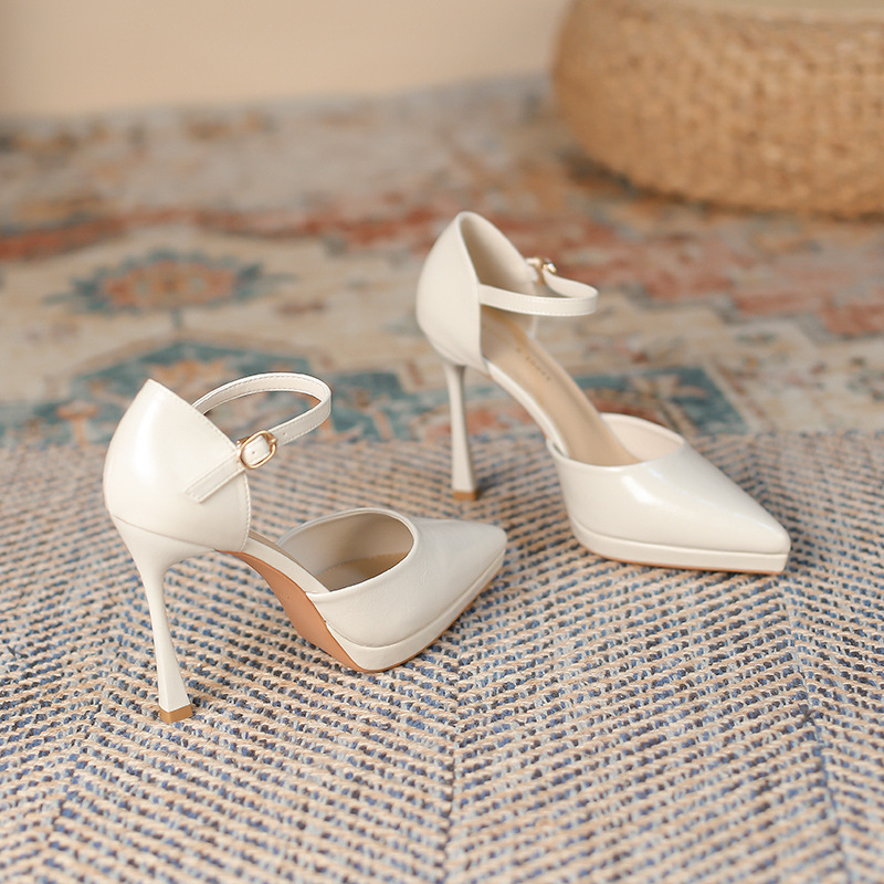 高跟鞋女年新款尖头防水台单鞋中空10.5CM细跟女鞋