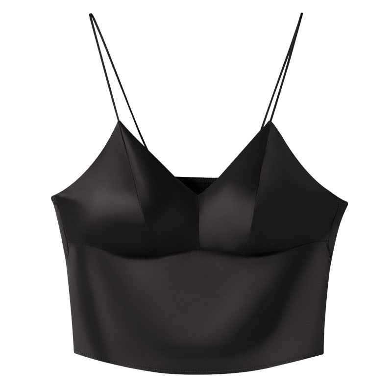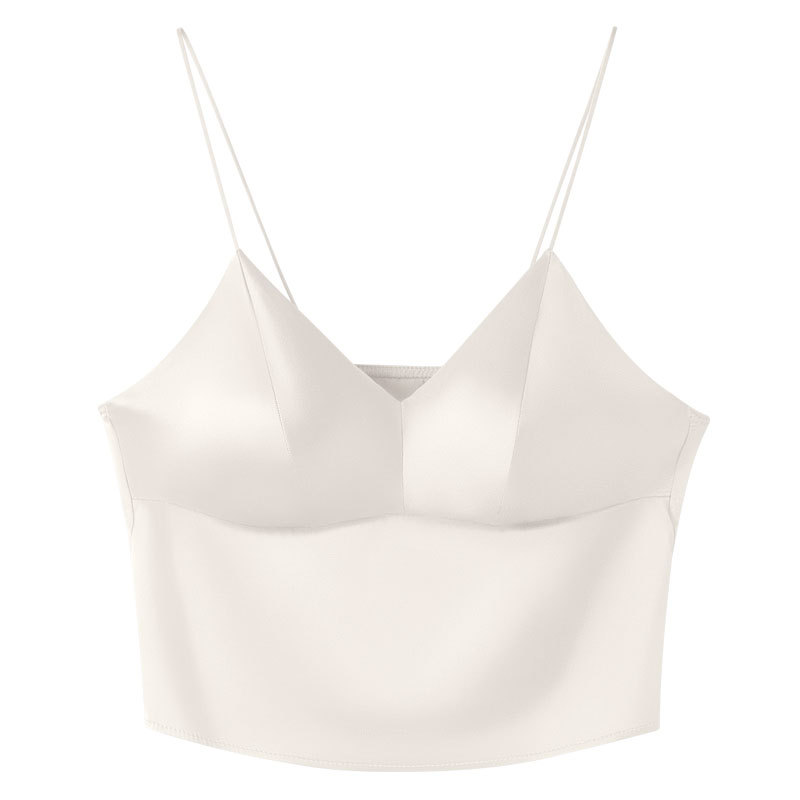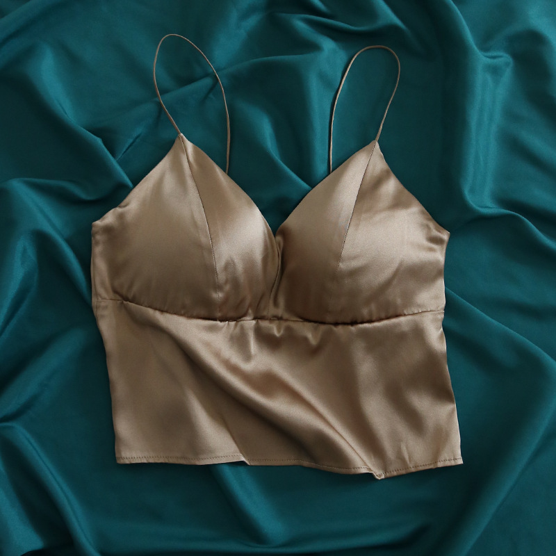 真丝缎面美背短吊带 法式三角杯桑蚕丝内衣无钢圈真丝文胸