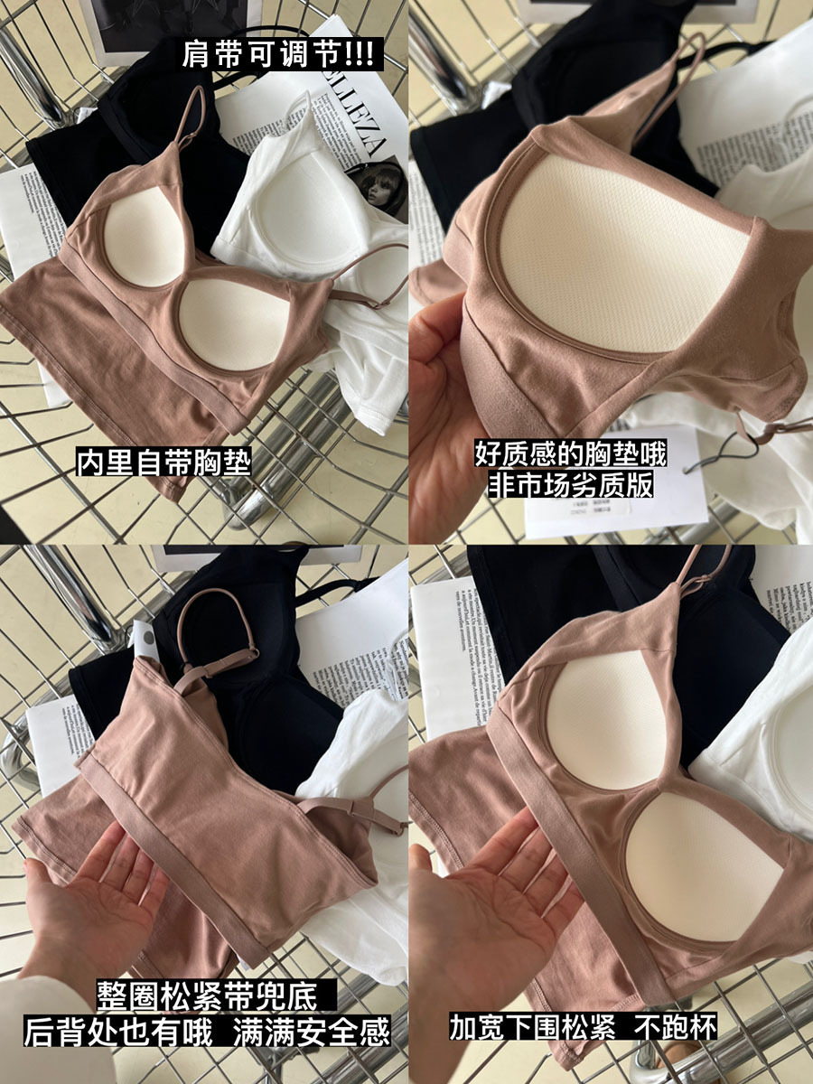 带胸垫 法式细肩带修身一字领吊带背心美背打底夏季