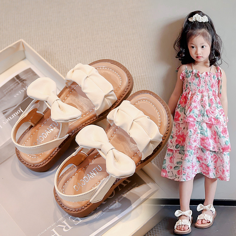 2025夏季新款女童蝴蝶结公主鞋韩版小女孩凉鞋中大童沙滩休闲鞋子
