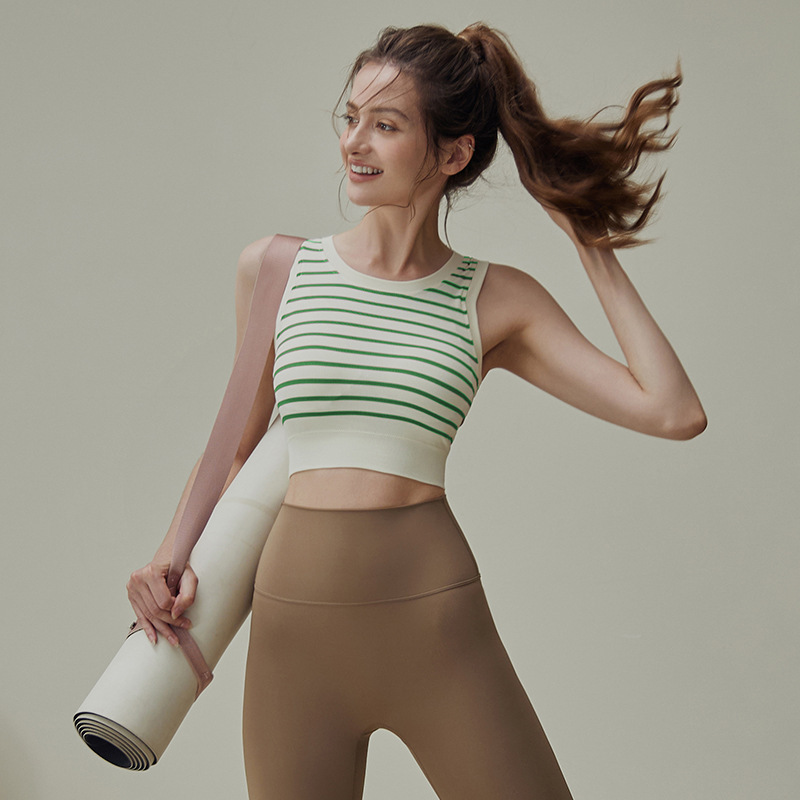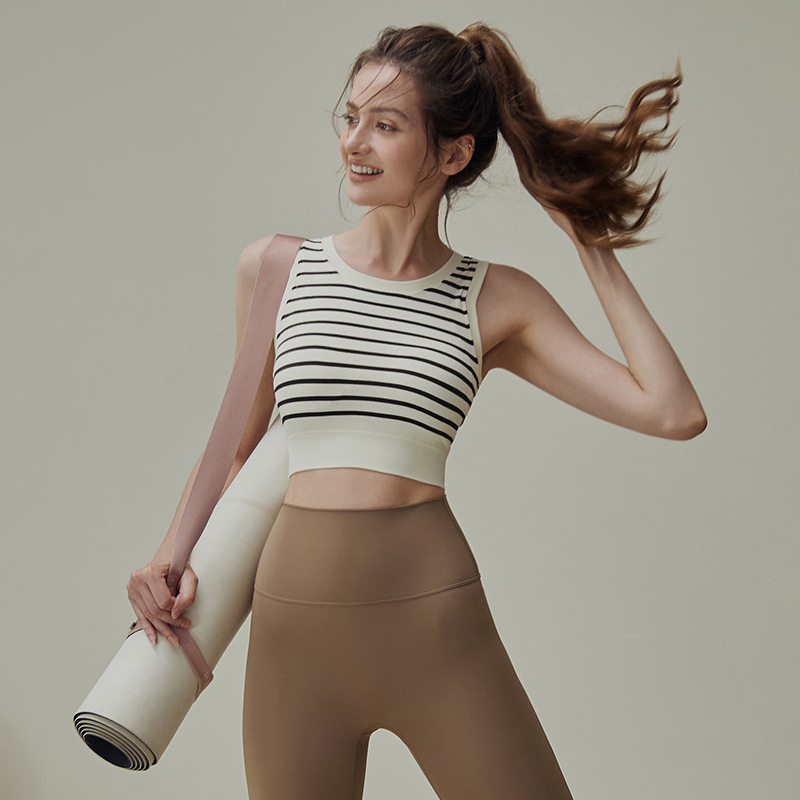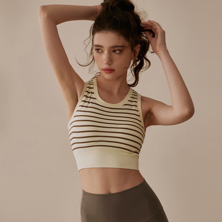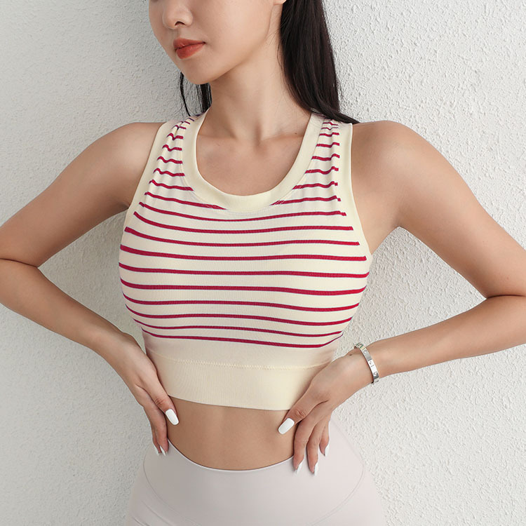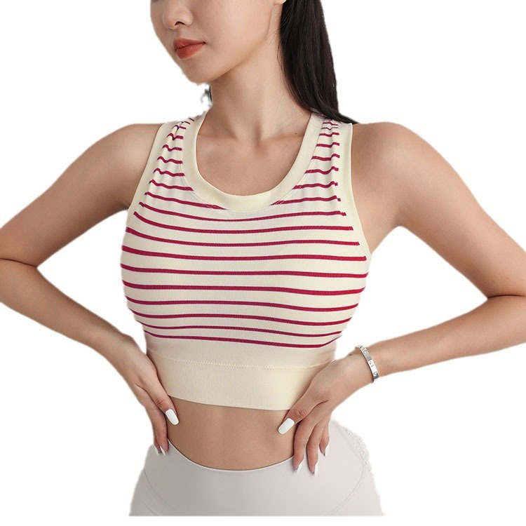 新款运动文胸防震一体式条纹瑜伽背心高弹速干美背健身运动背心