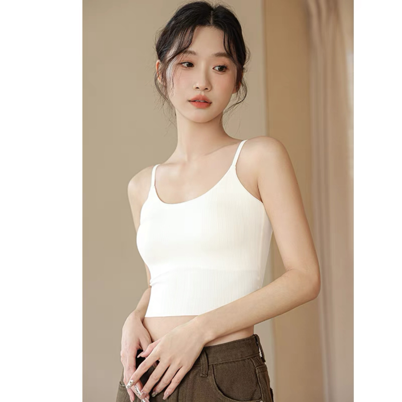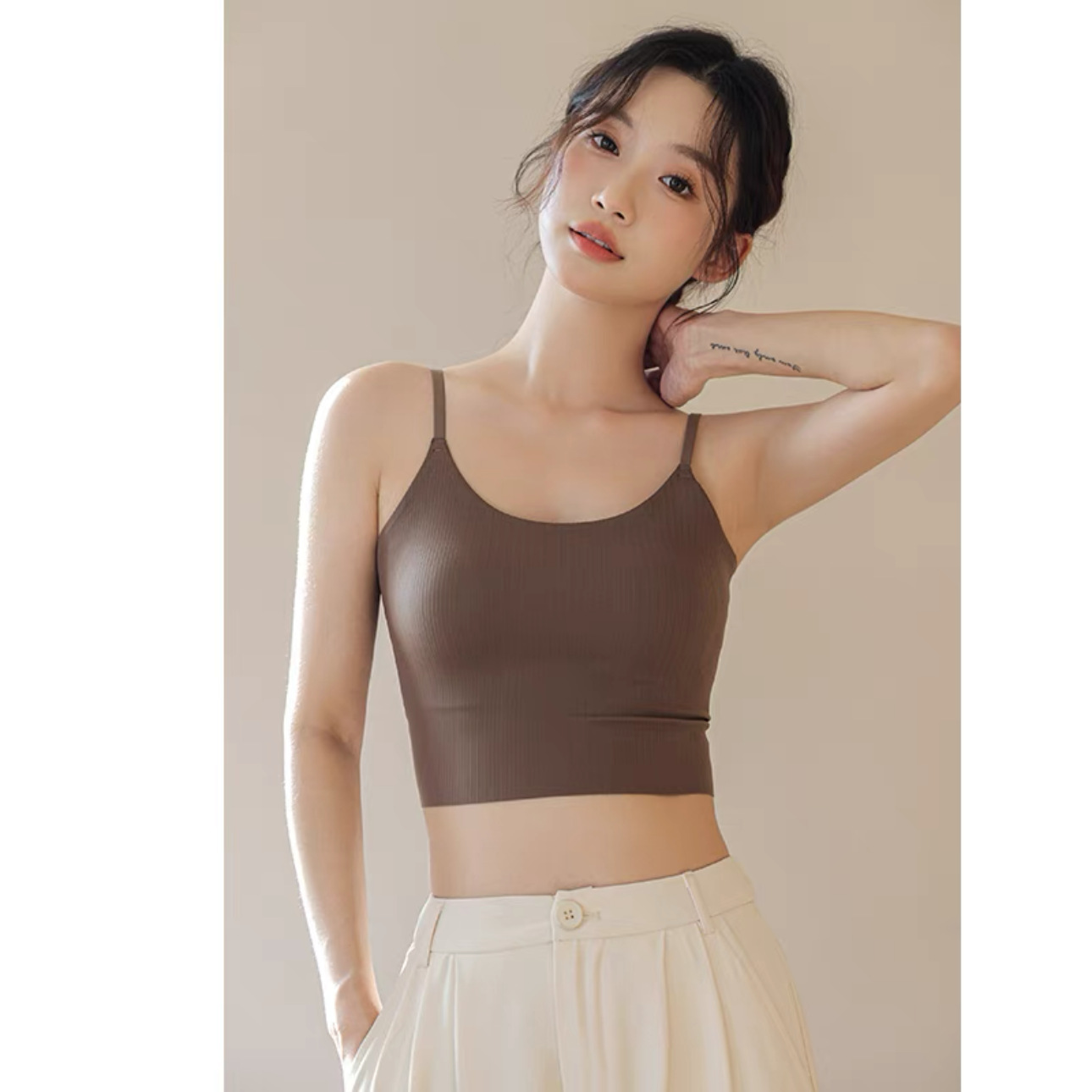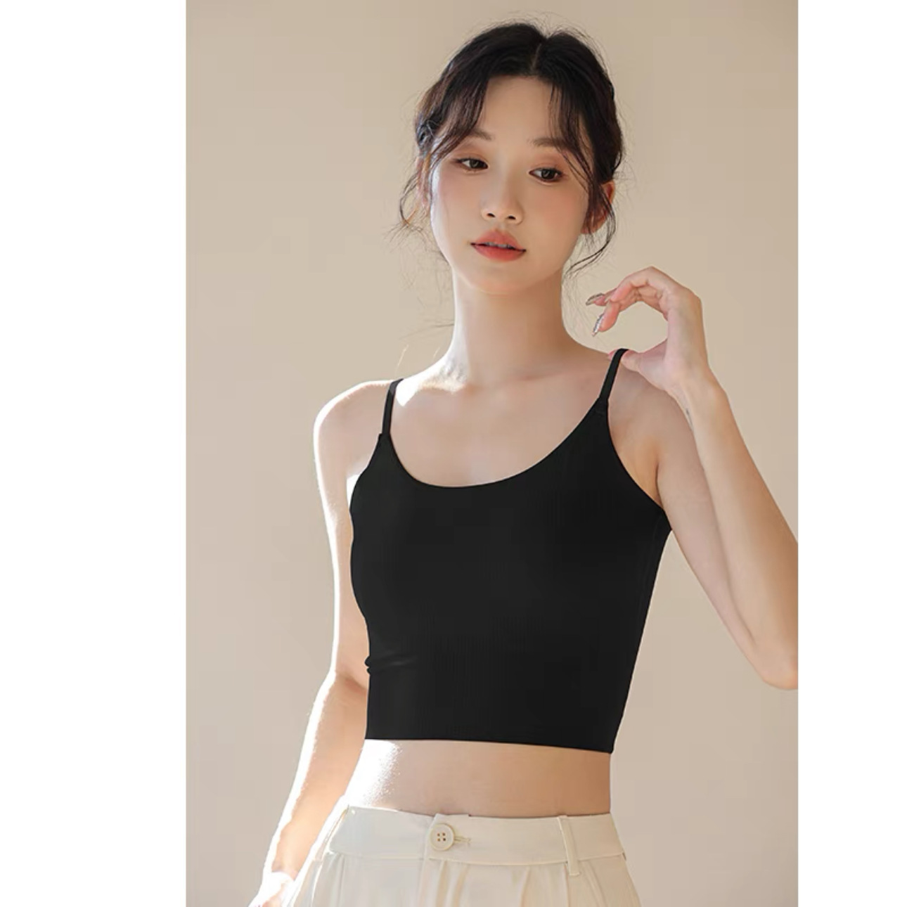 无痕吊带背心内衣女短款冰丝运动内搭带胸垫夏季美背打底外穿上衣