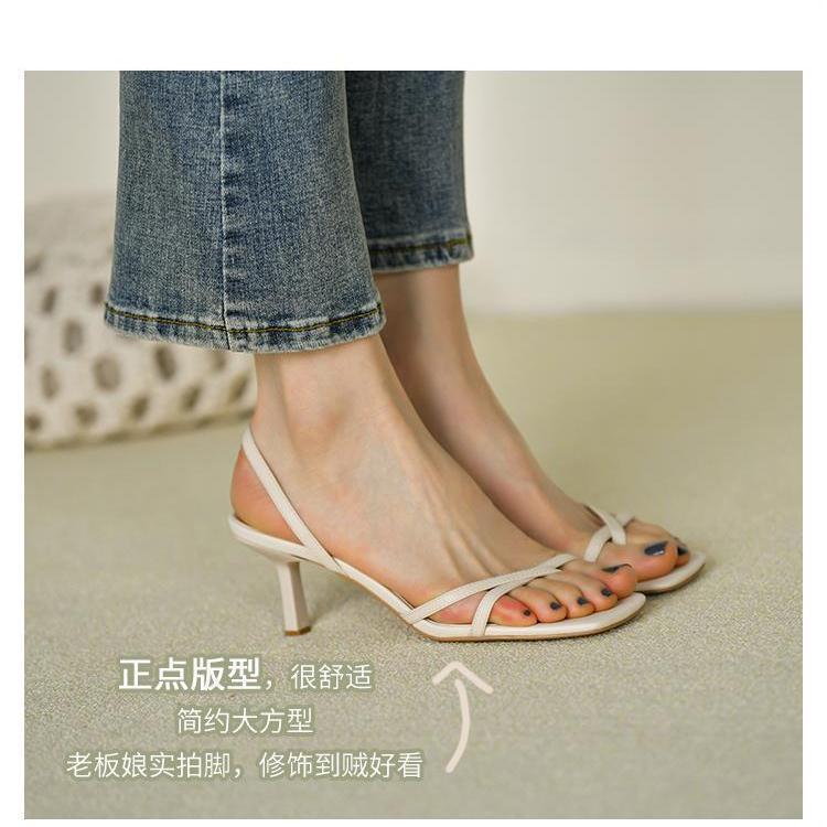 简约白色细跟高跟鞋夏季新款韩版百搭一字凉鞋女式时尚细带