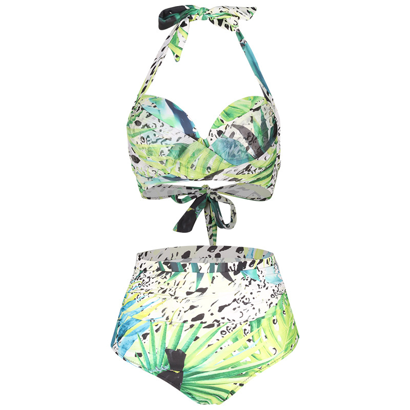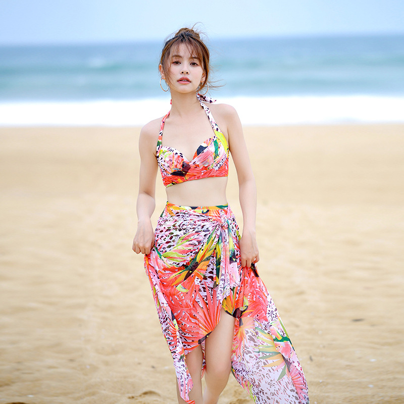 绿色泳装时尚性感女比基尼小胸聚拢钢托三件套游泳衣温泉海边沙滩
