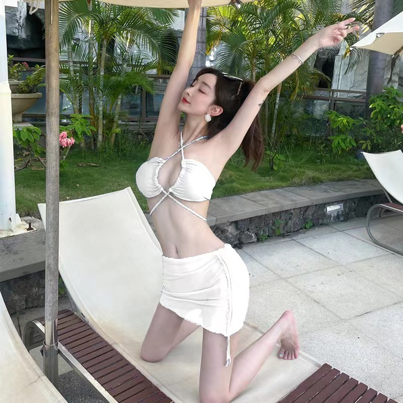 时尚新款绑带纱裙比基尼三件套性感显瘦海边度假温泉泳衣女