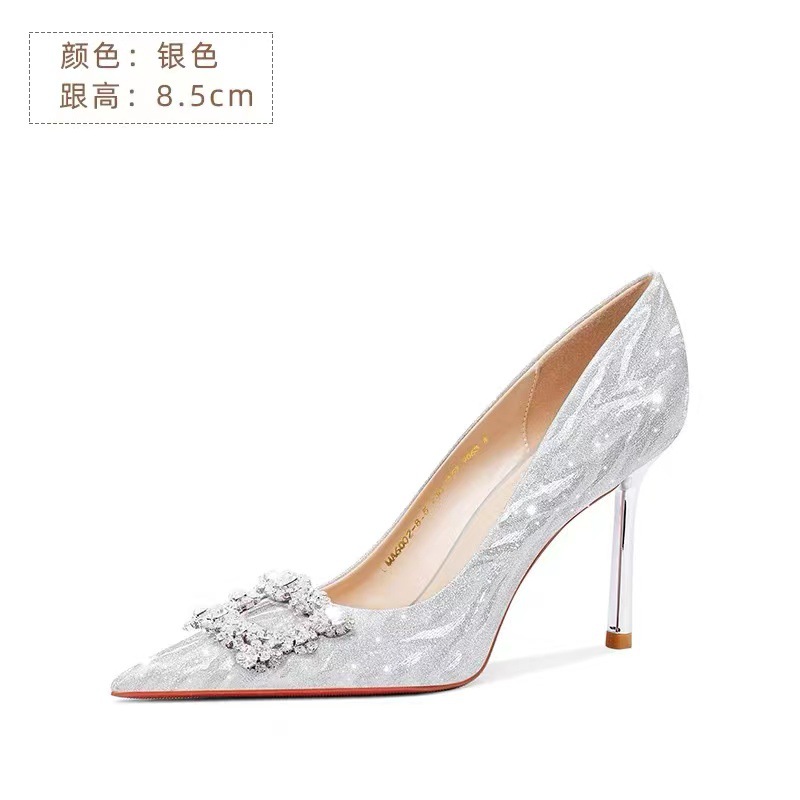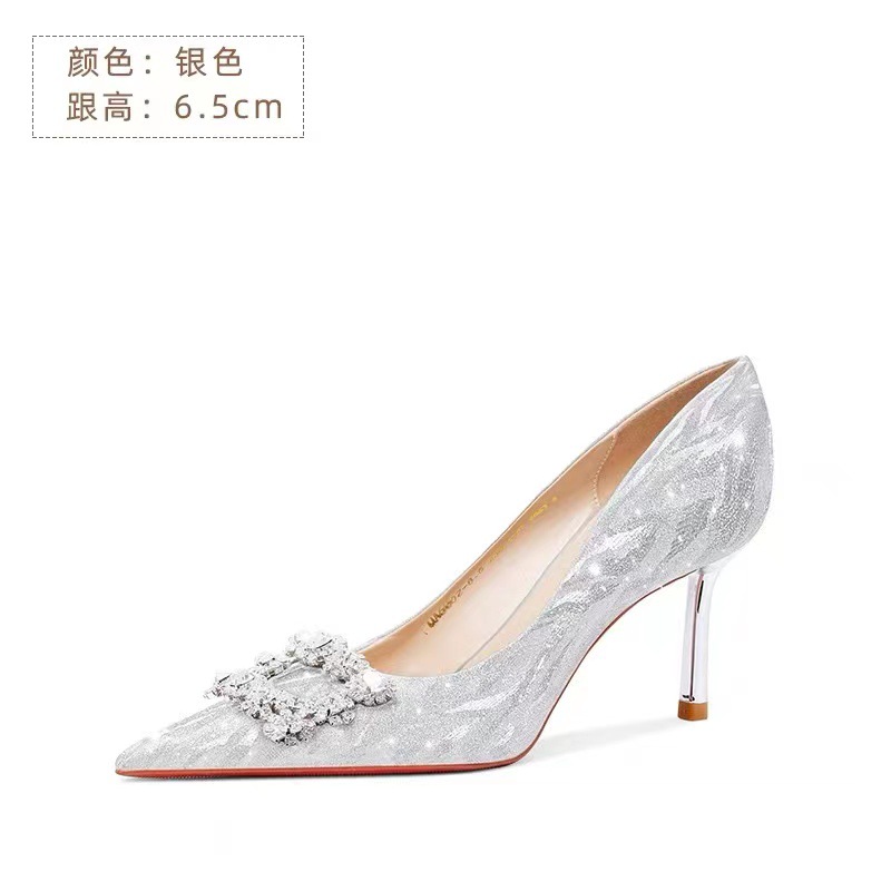新款漆皮高跟凉鞋细跟尖头工作鞋气质百搭包头一字带单鞋