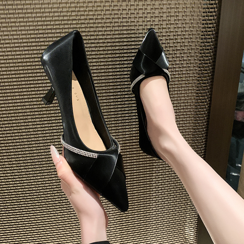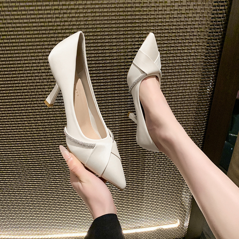 尖头高跟鞋女时尚水钻细跟外穿工作鞋春季新品高级感气质单鞋