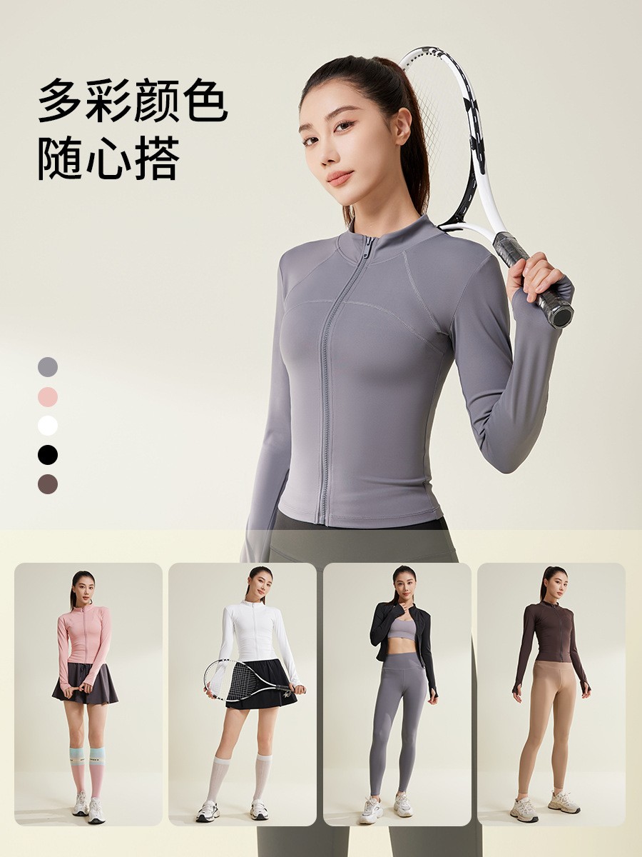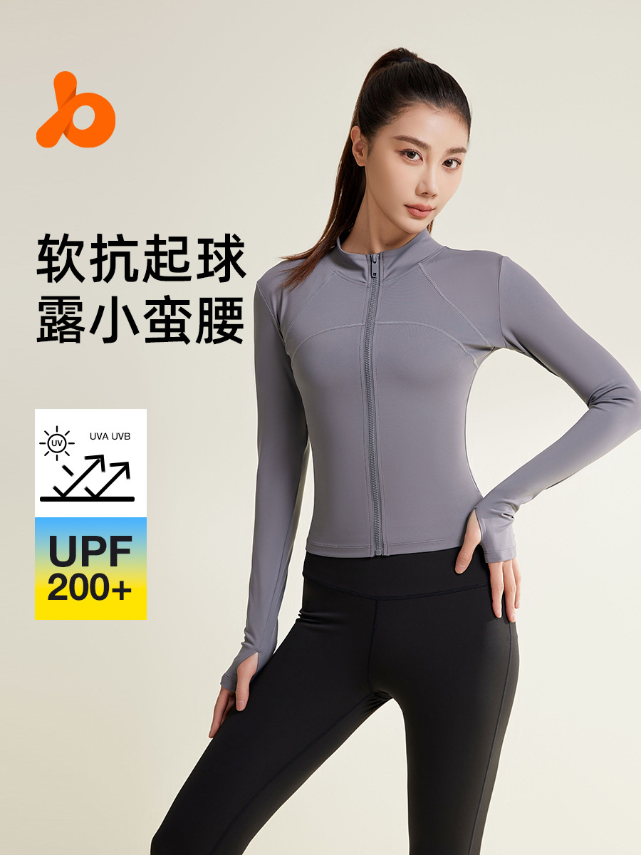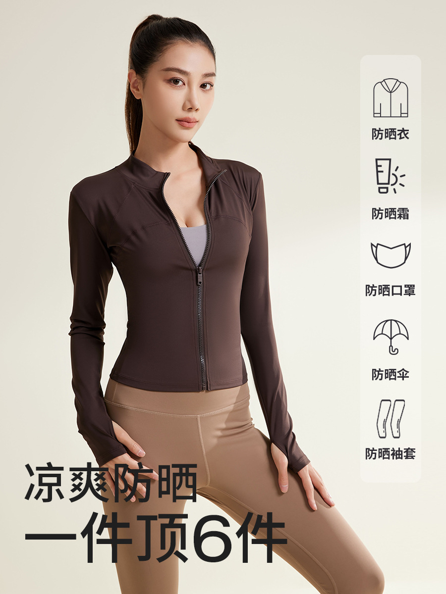 聚衣堂拼线瑜伽外套速干透气防紫外线健身衣显瘦轻薄防晒衣