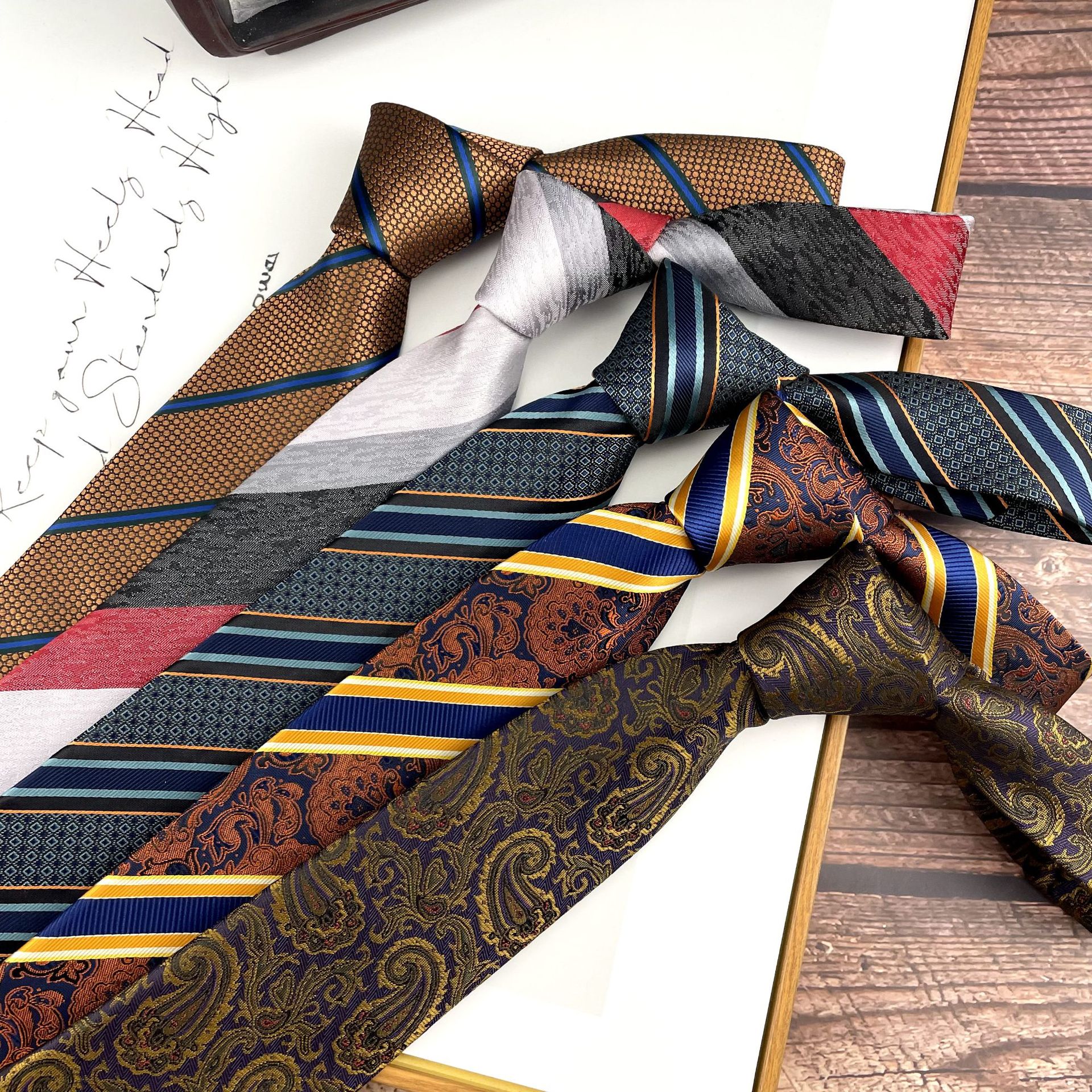 意大利风格领带男8CM商务条纹复古灰色咖色蓝色 正装百搭英伦花纹