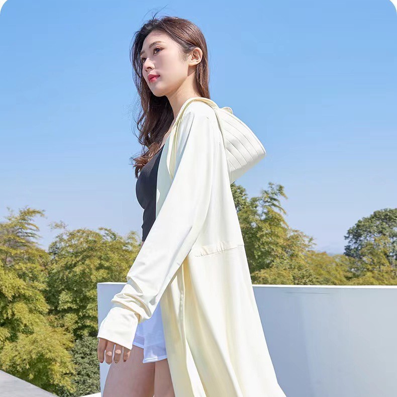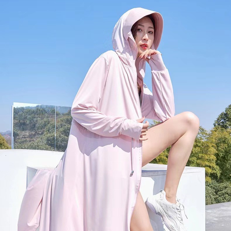 长款凉感防晒衣黑胶帽檐upf50+防晒斗篷防紫外线妇女节防晒服