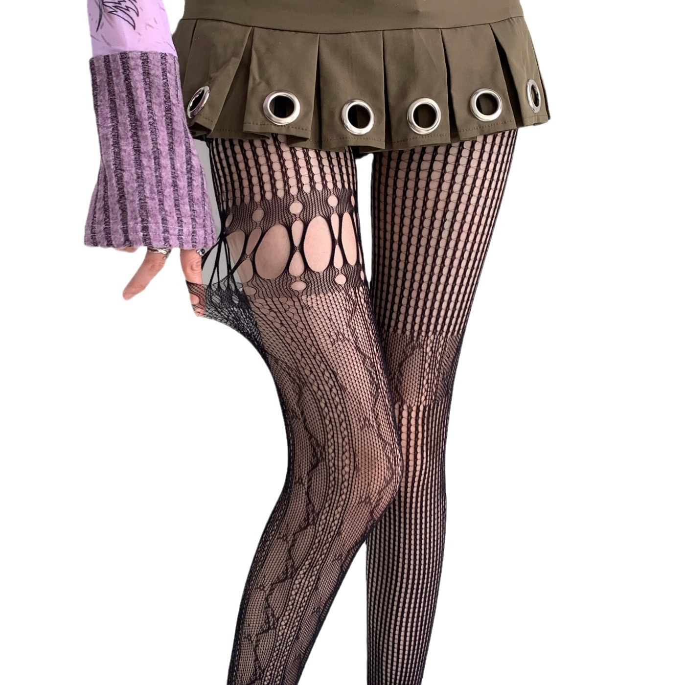 千禧辣妹性感小众镂空情趣渔网袜y2k拼接黑丝百搭ab腿少女连裤袜