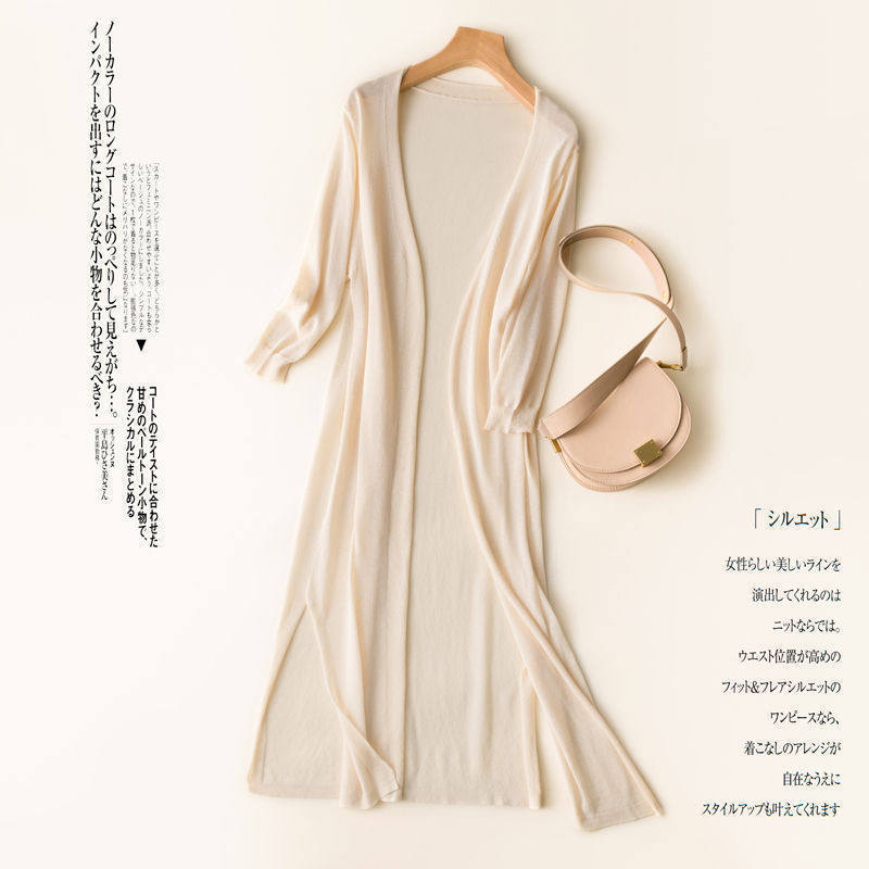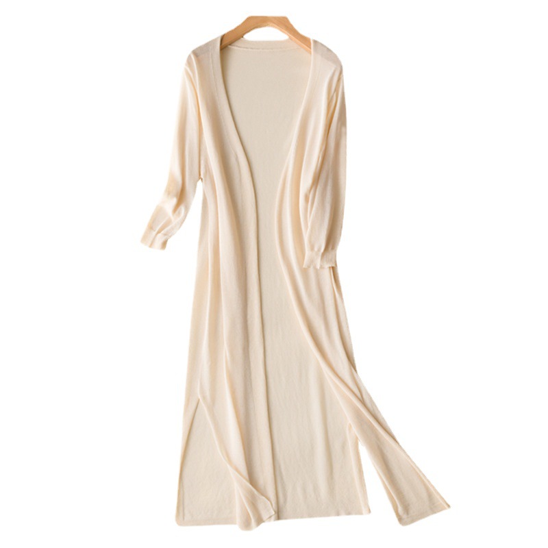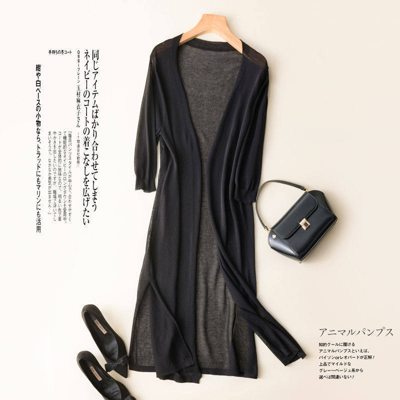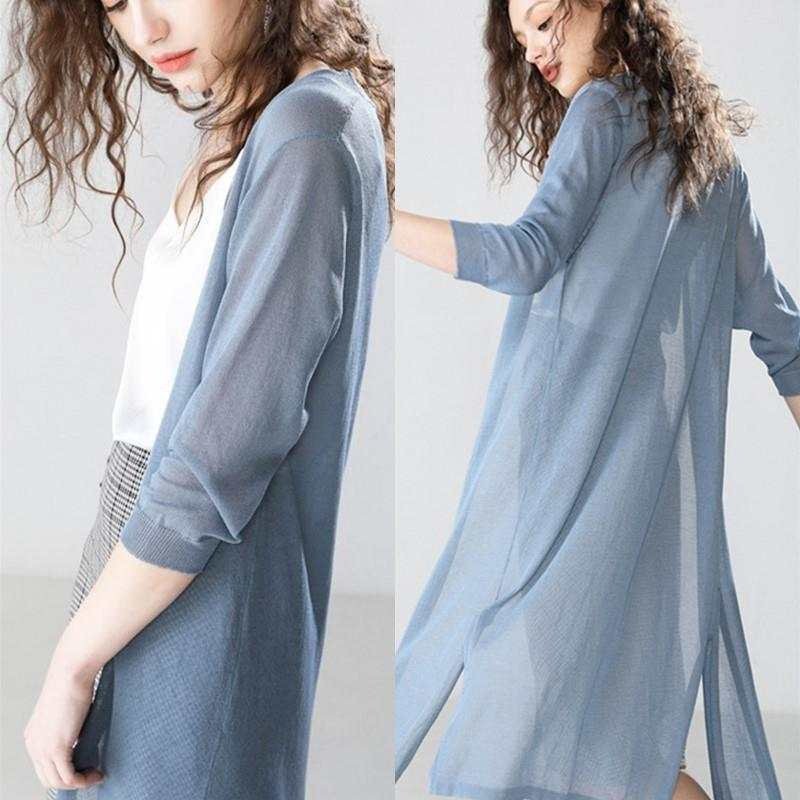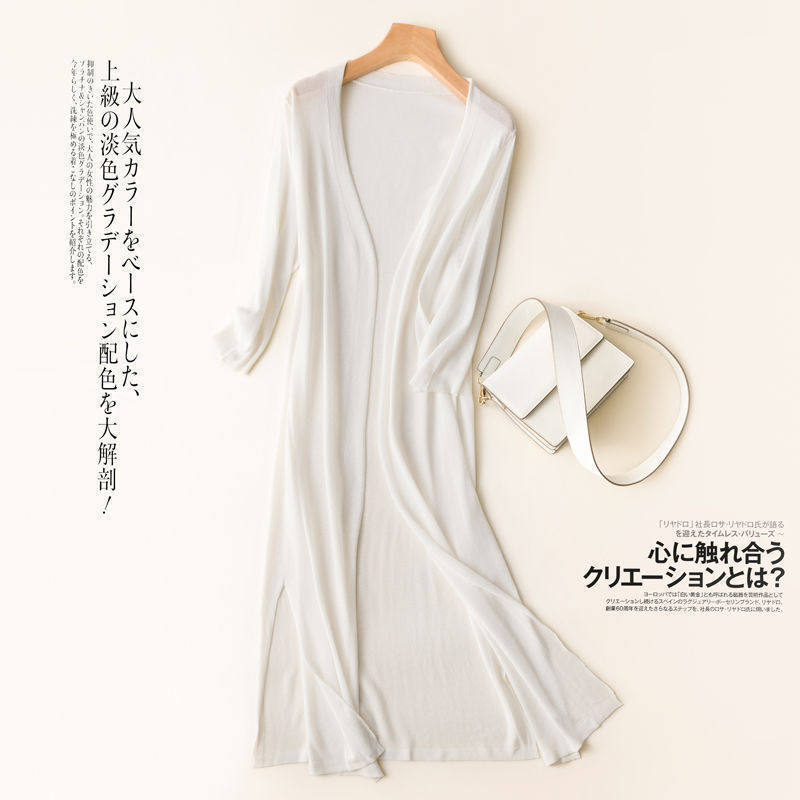夏季长款冰丝防晒衣薄款外搭空调衫针织开衫女夏镂空防晒罩衫上衣