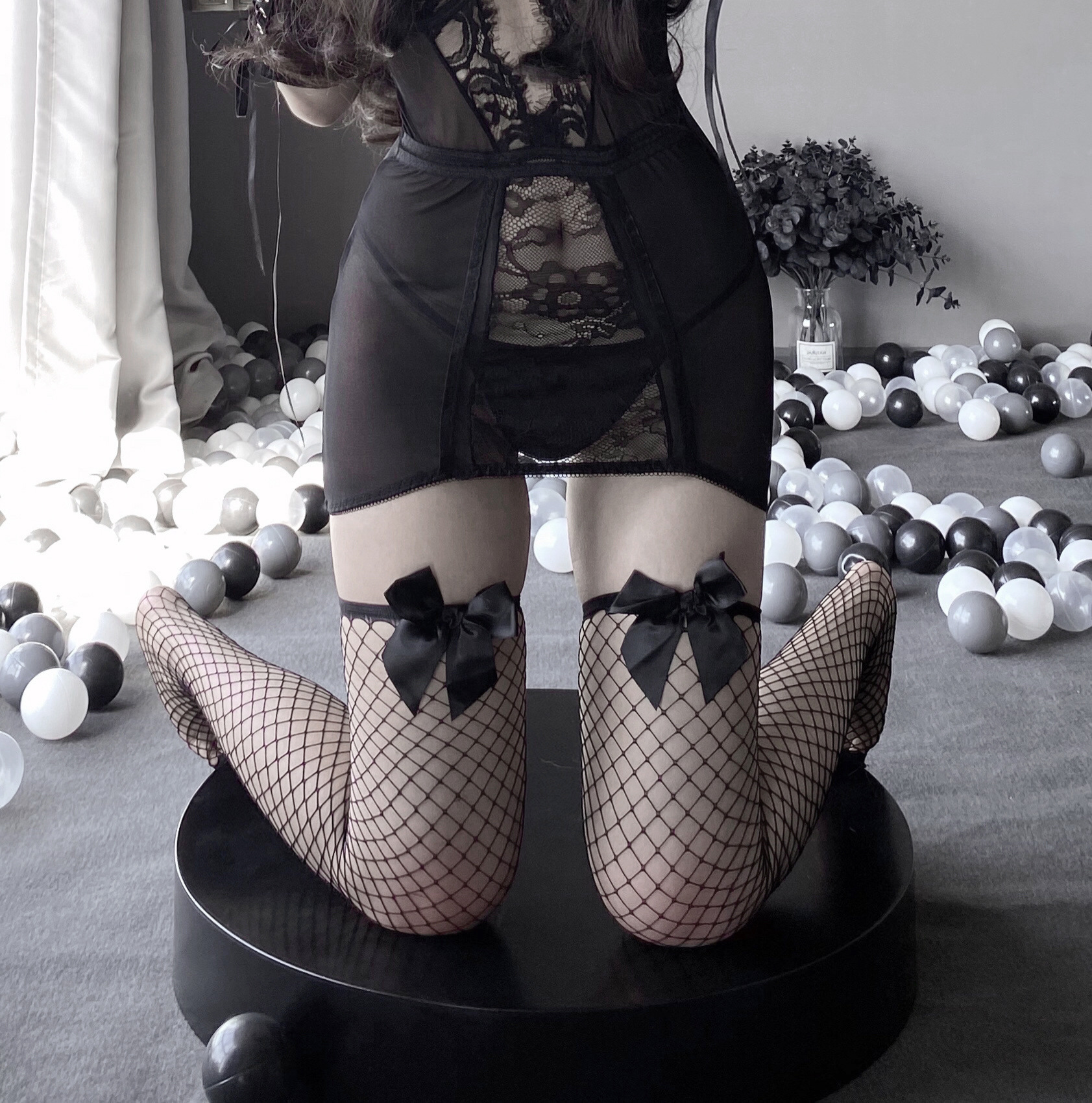 性感蝴蝶结网袜情趣大网眼女士渔网丝袜长筒袜