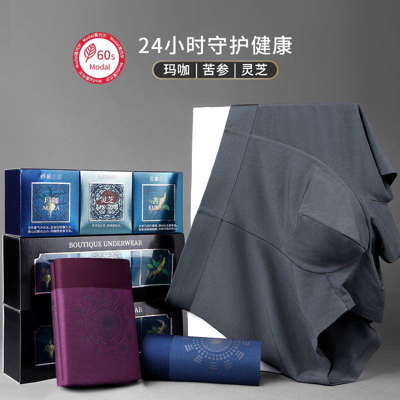高端盒装男士无痕内裤莫代尔男士平角裤灵芝玛咖裆男士养生内裤