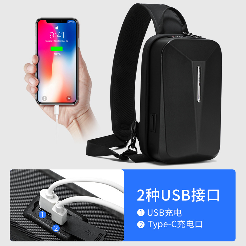 新款硬壳男士多功能防盗胸包时尚商务密码锁小背包防水出行斜挎包