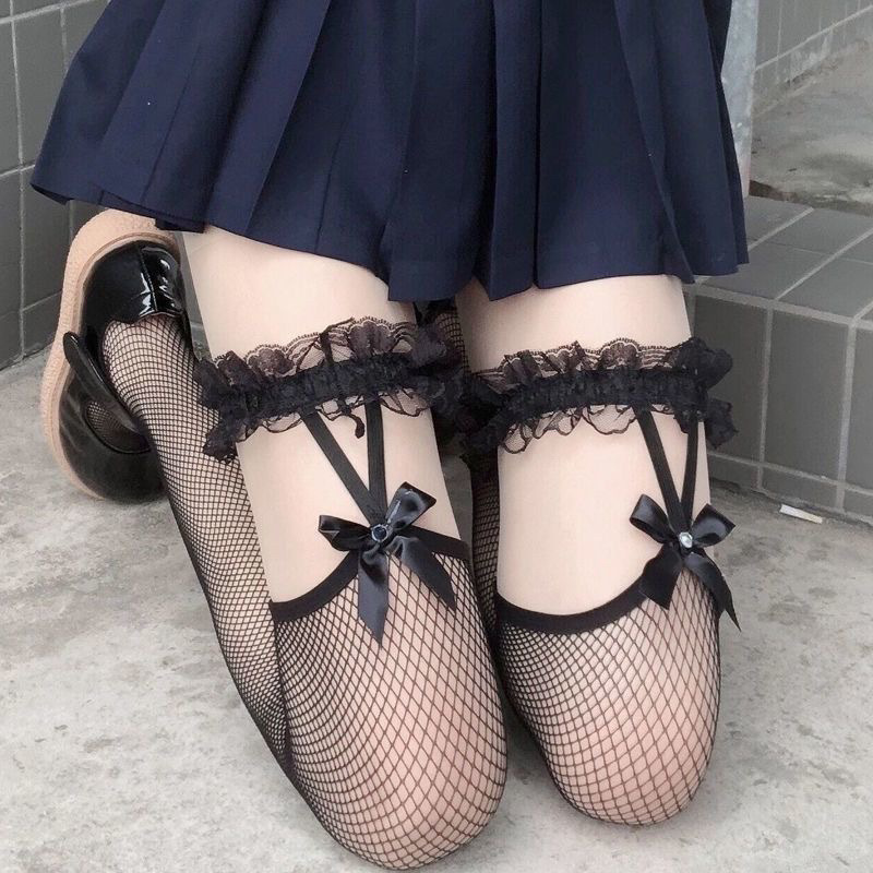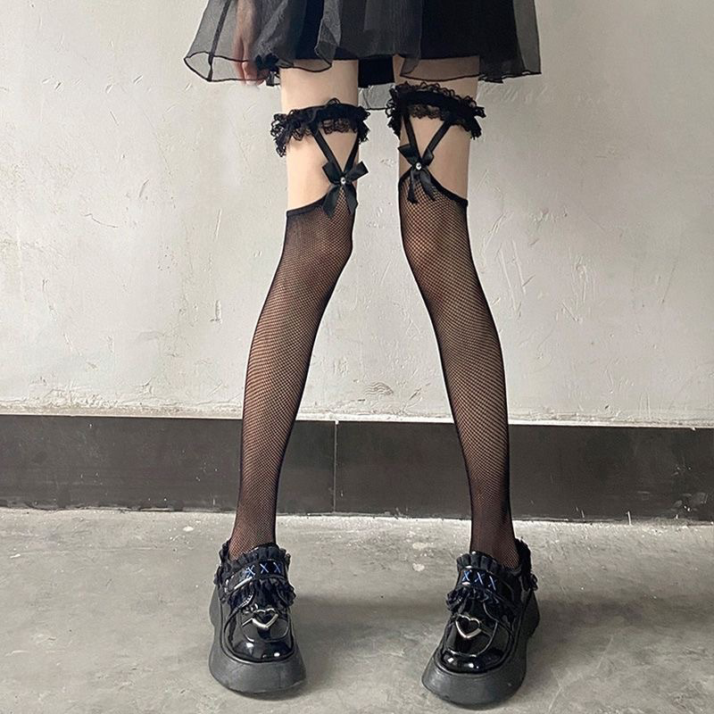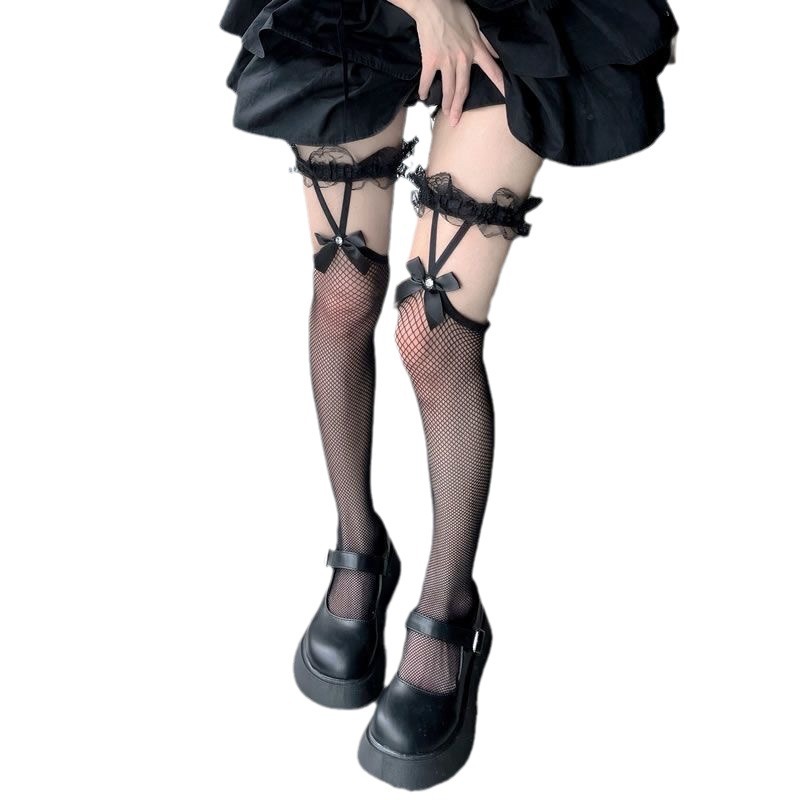 黑丝袜情调蕾丝吊带腿环花边大腿丝袜过膝长筒性感欧美网袜女